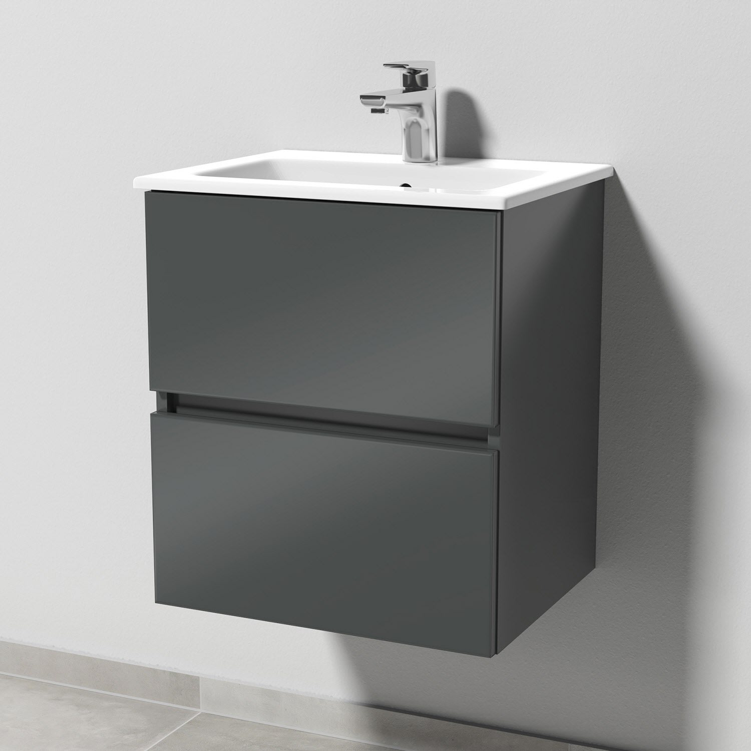 Sanipa Solo One Euphoria-Compact Keramik-Set 49,2 cm mit Keramik-Waschtisch und Waschtischunterbau mit 2 Auszügen