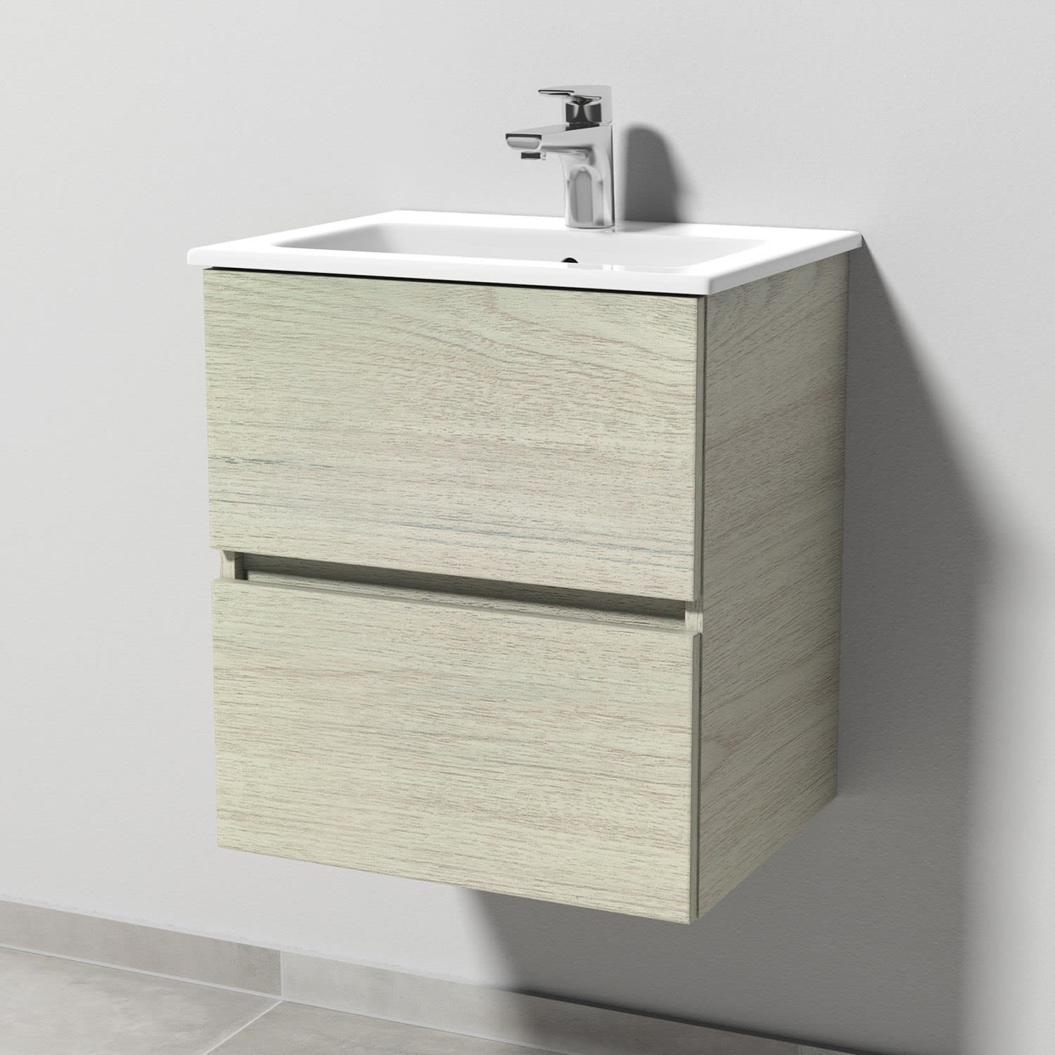 Sanipa Solo One Euphoria-Compact Keramik-Set 49,2 cm mit Keramik-Waschtisch und Waschtischunterbau mit 2 Auszügen
