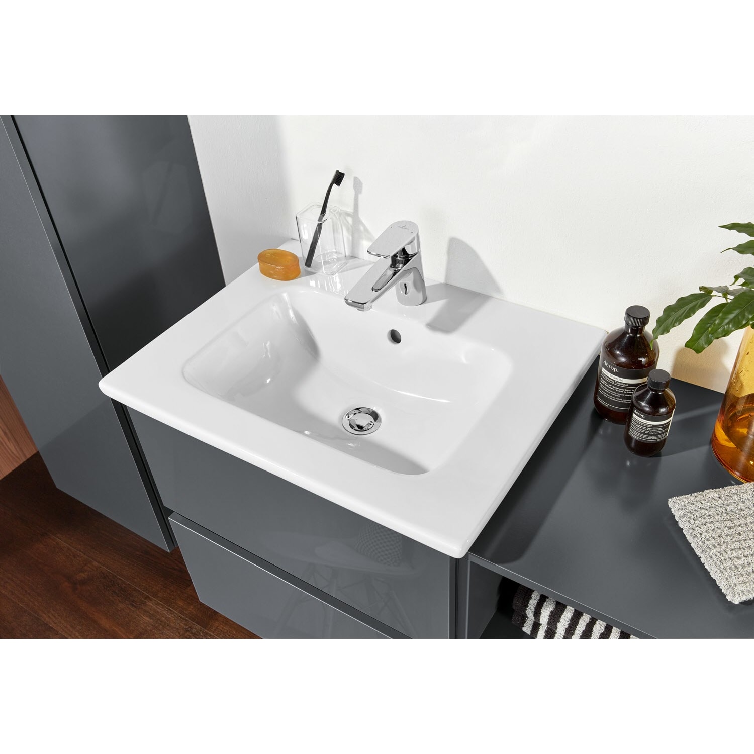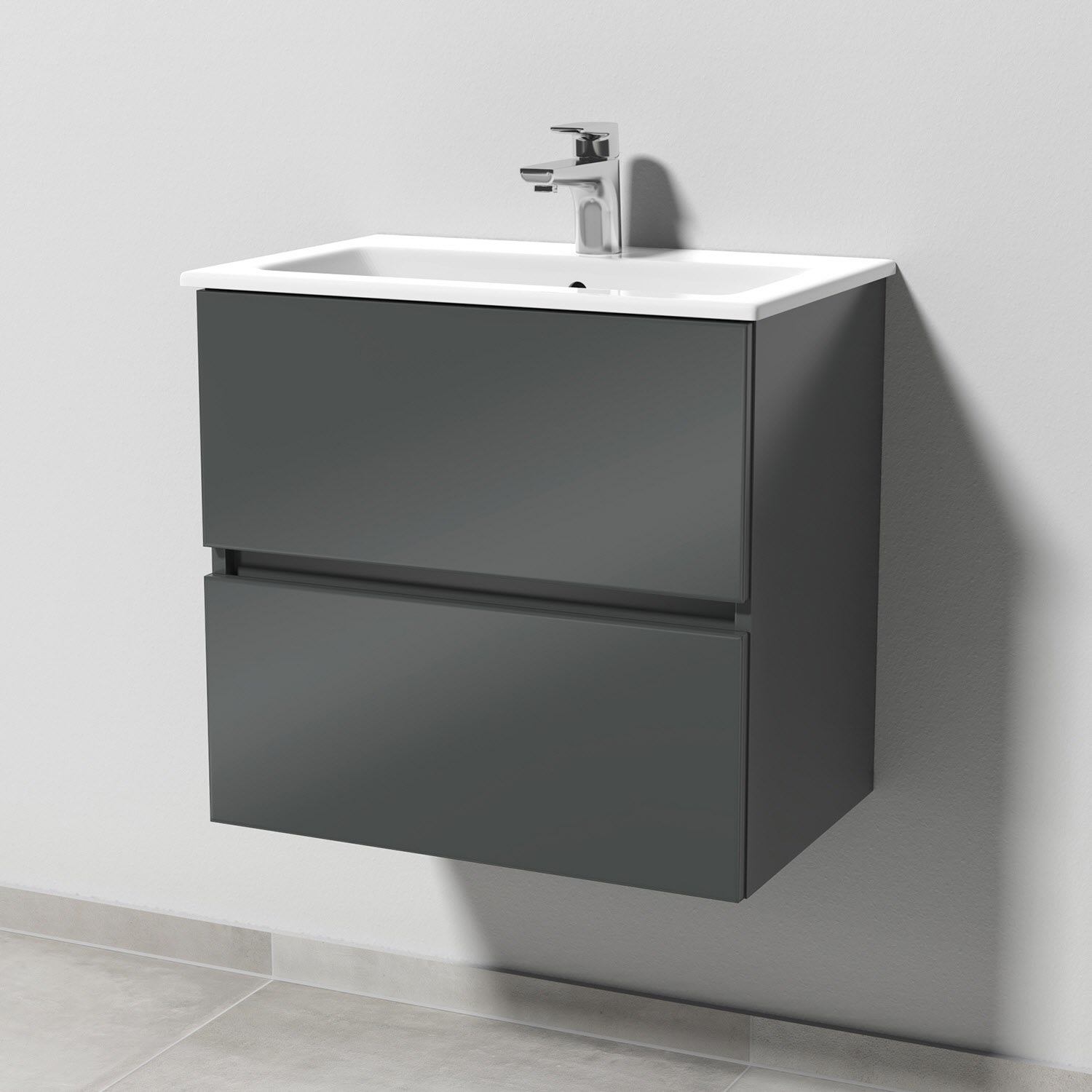 Sanipa Solo One Euphoria-Compact Keramik-Set 59,2 cm mit Keramik-Waschtisch und Waschtischunterbau mit 2 Auszügen