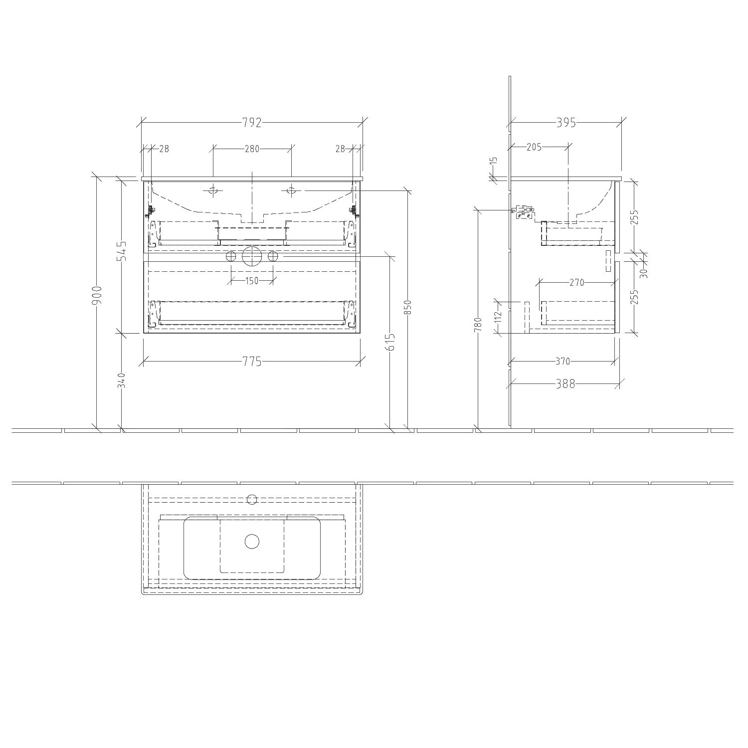- Breite: 77,5 cm Tiefe: 38,8 cm (inkl. Front) Höhe: 54,5 cm