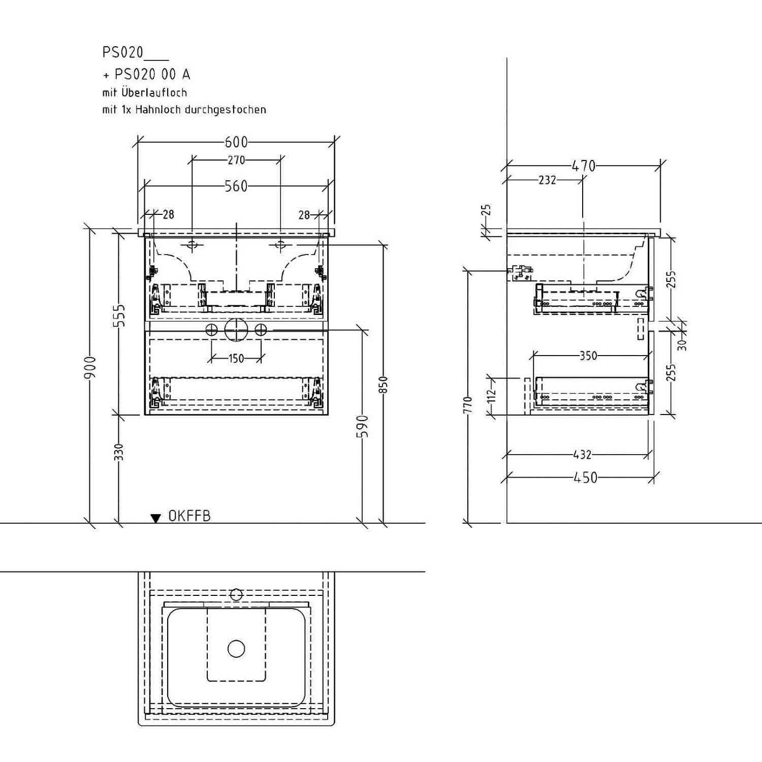 Sanipa Solo One Euphoria Waschtischkombination mit Keramikwaschtisch 60 cm, 2 Auszüge