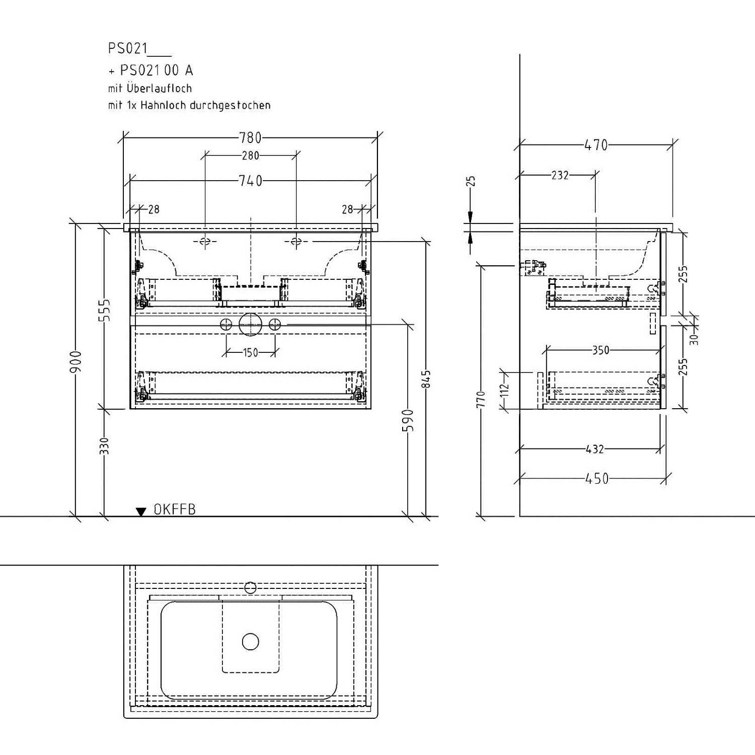 Sanipa Solo One Euphoria Waschtischkombination mit Keramikwaschtisch 78 cm, 2 Auszüge