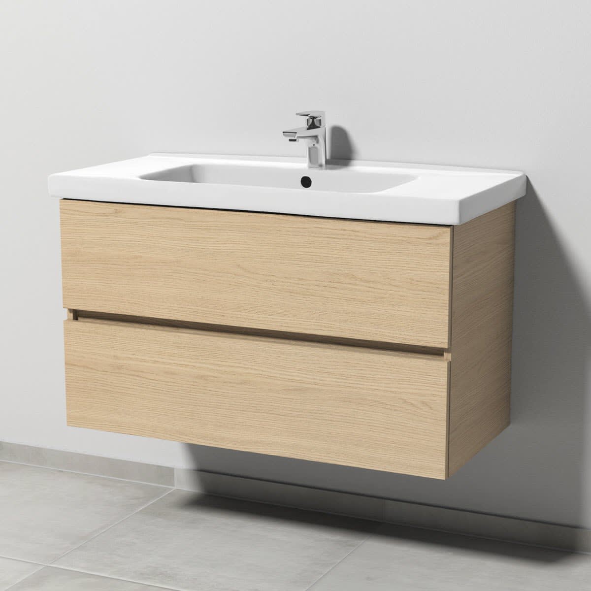 Sanipa Solo One Harmonia Waschtischkombination mit Keramikwaschtisch 100 cm, 2 Auszüge
