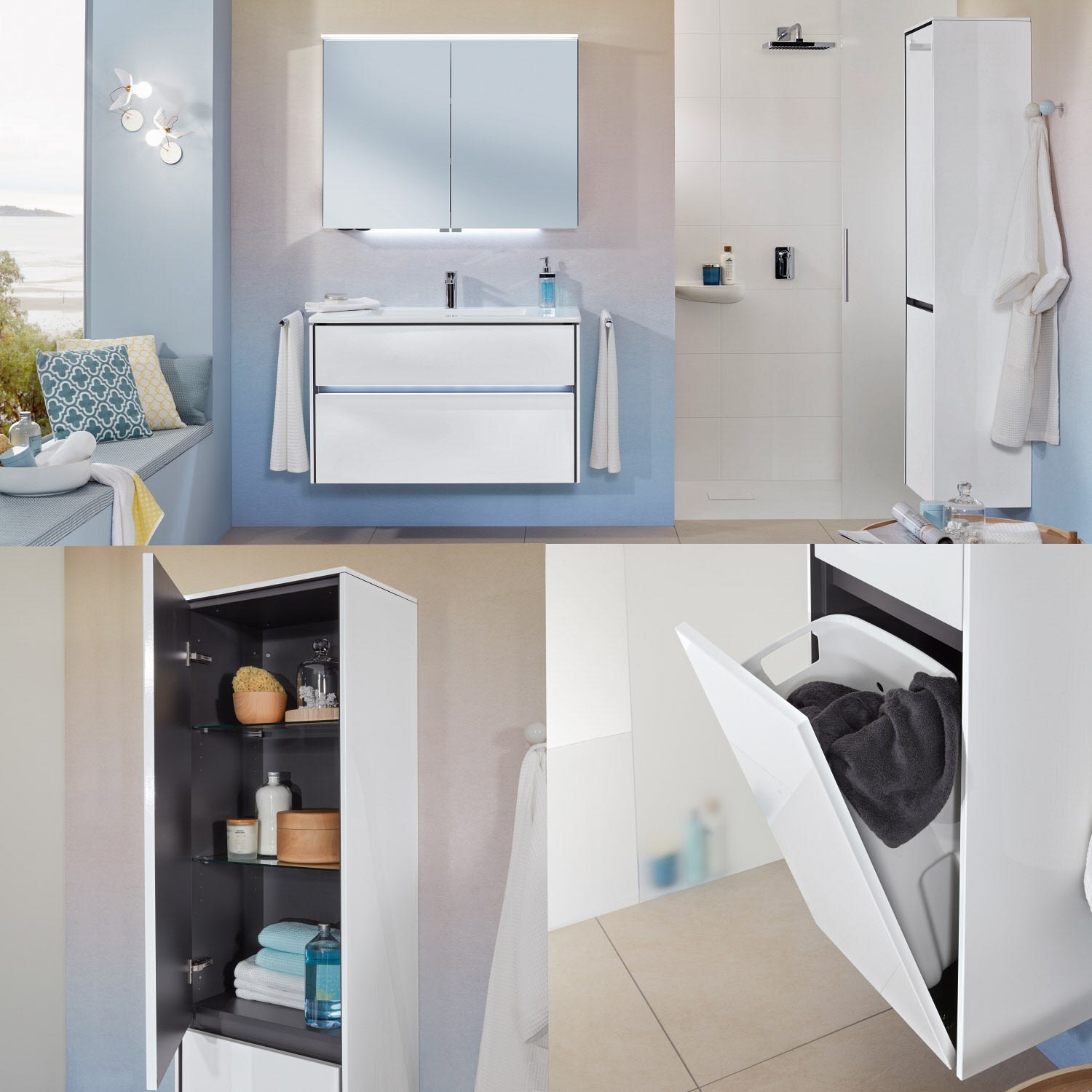 Sanipa Twiga Hochschrank 47,5 cm, 1 Wäschekippe, 1 Türe mit Türanschlag links, inkl. LED-Beleuchtung