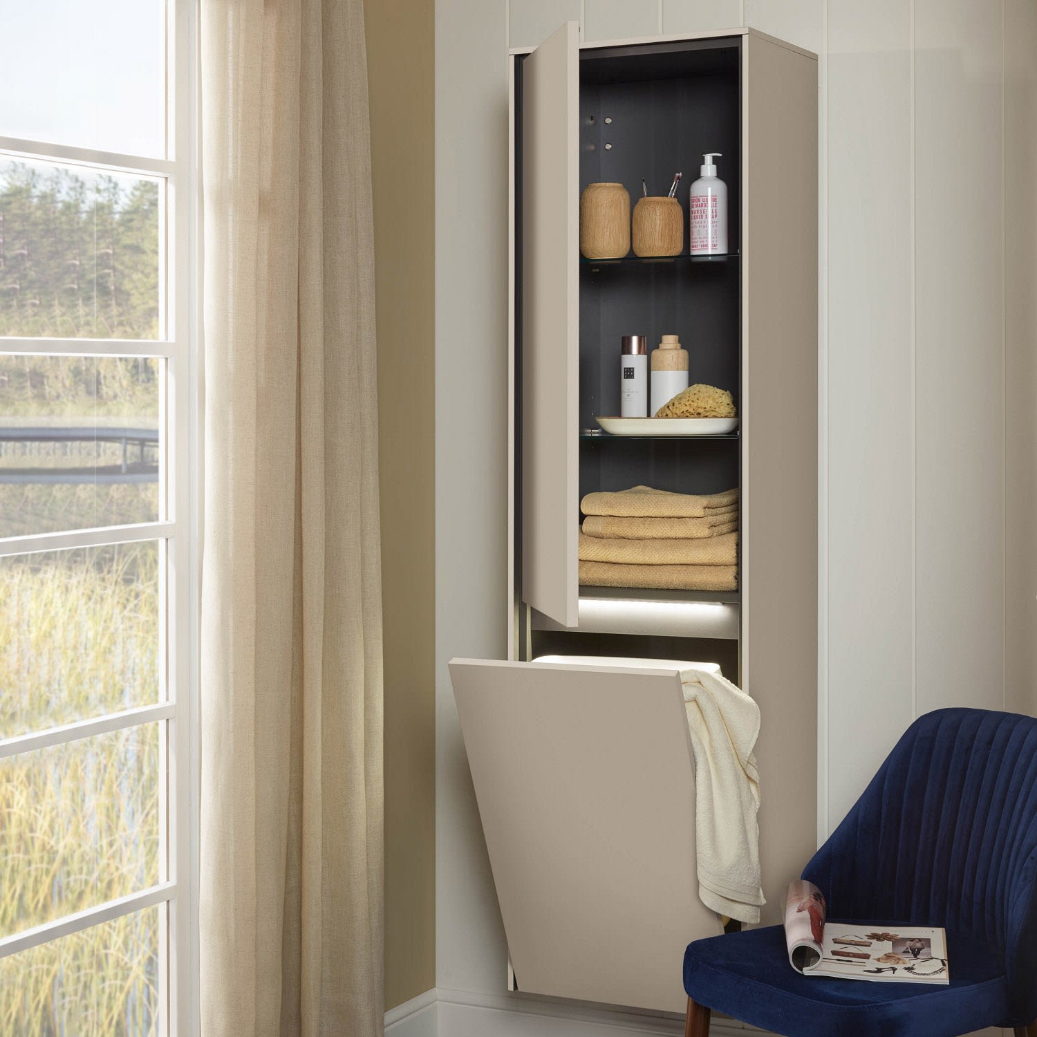 Sanipa Twiga Hochschrank 47,5 cm, 1 Wäschekippe, 1 Türe mit Türanschlag links, inkl. LED-Beleuchtung