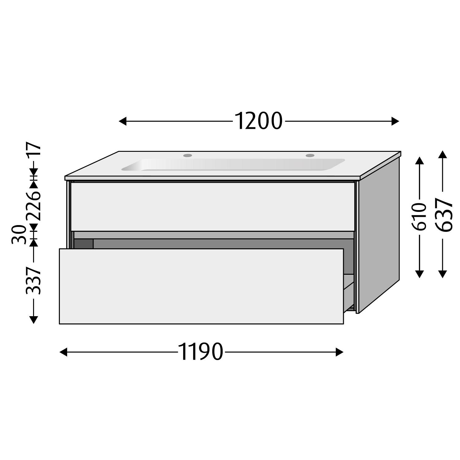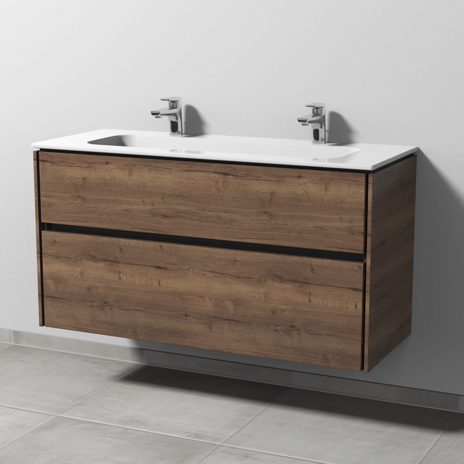 Sanipa Twiga Keramik-Doppelwaschtisch Design 120 cm mit Unterschrank, 2 Auszüge