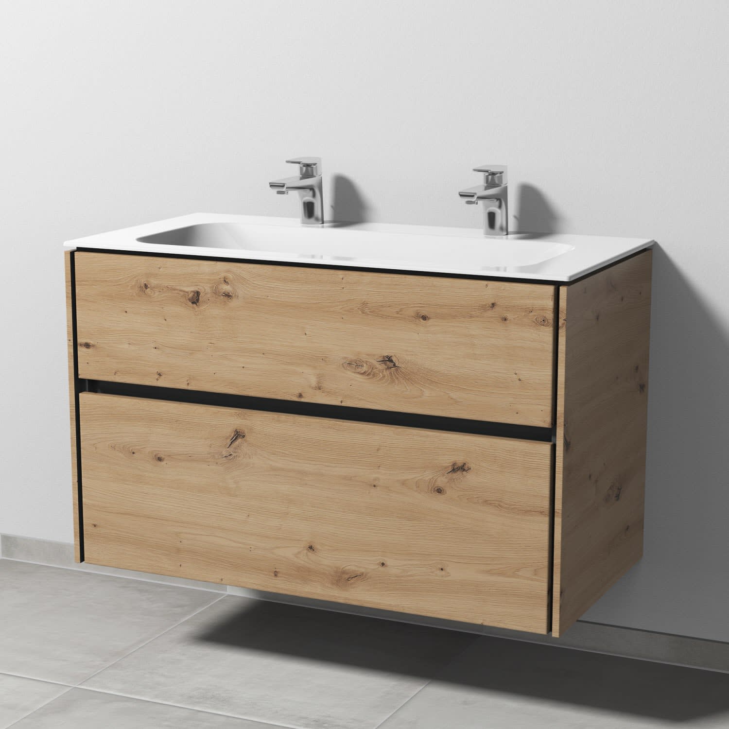 Sanipa Twiga Keramik-Doppelwaschtisch Finion 100 cm mit Unterschrank, 2 Auszüge