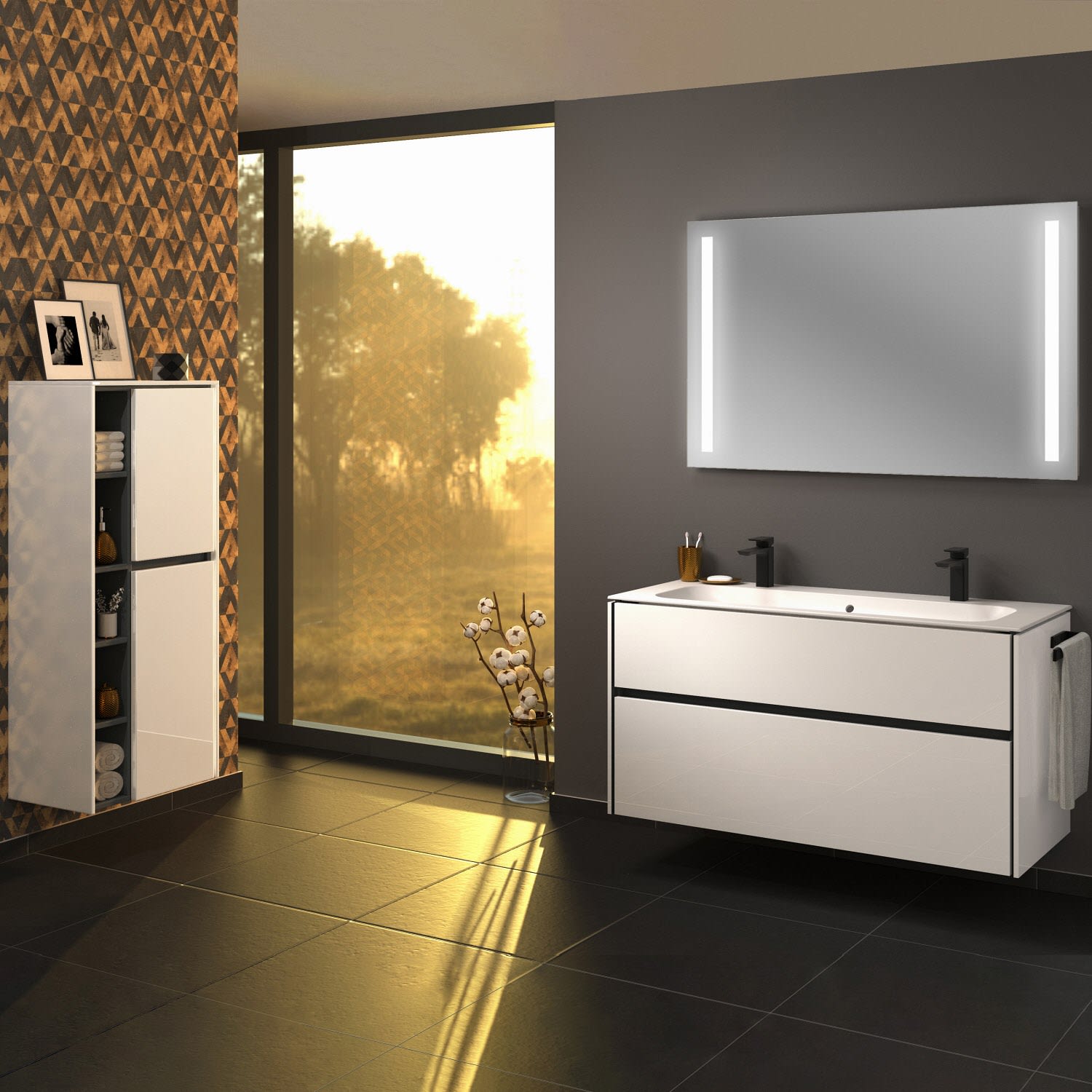 Sanipa Twiga Keramik-Doppelwaschtisch Finion 120 cm mit Unterschrank, 2 Auszüge, inkl. LED-Beleuchtung
