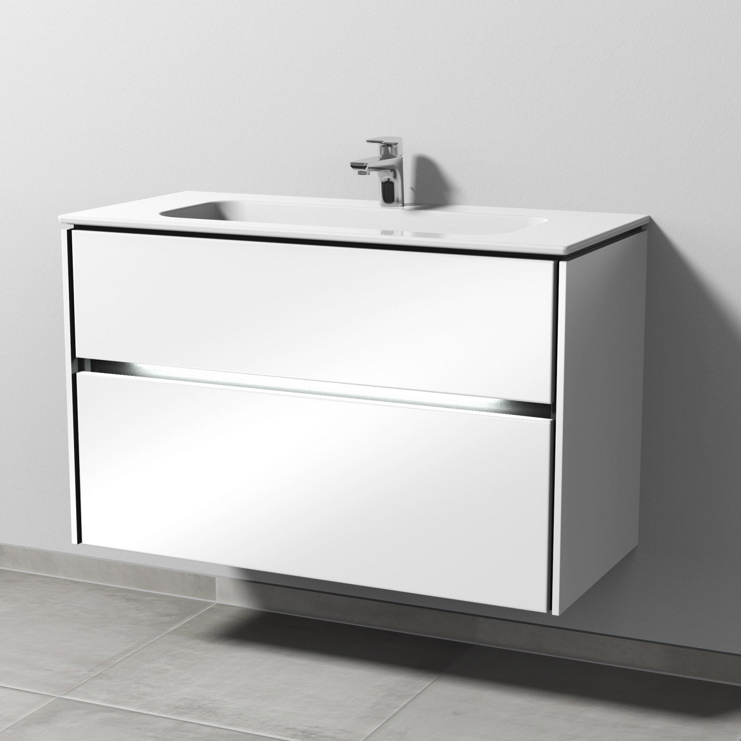 Sanipa Twiga Keramikwaschtisch Design 100 cm mit Unterschrank, 2 Auszügr, inkl. LED-Beleuchtung