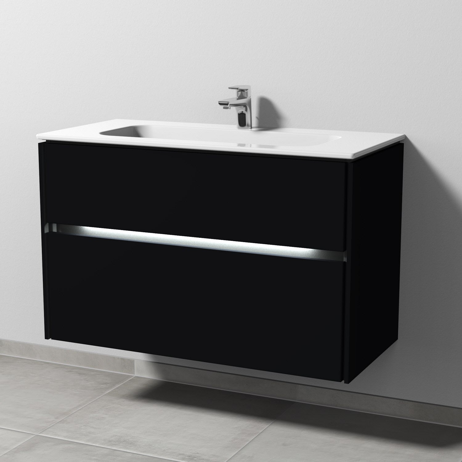 Sanipa Twiga Keramikwaschtisch Design 100 cm mit Unterschrank, 2 Auszügr, inkl. LED-Beleuchtung