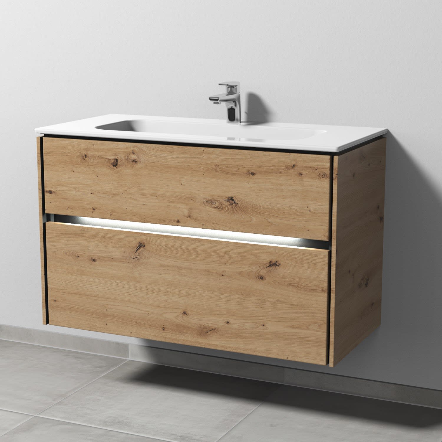 Sanipa Twiga Keramikwaschtisch Design 100 cm mit Unterschrank, 2 Auszügr, inkl. LED-Beleuchtung