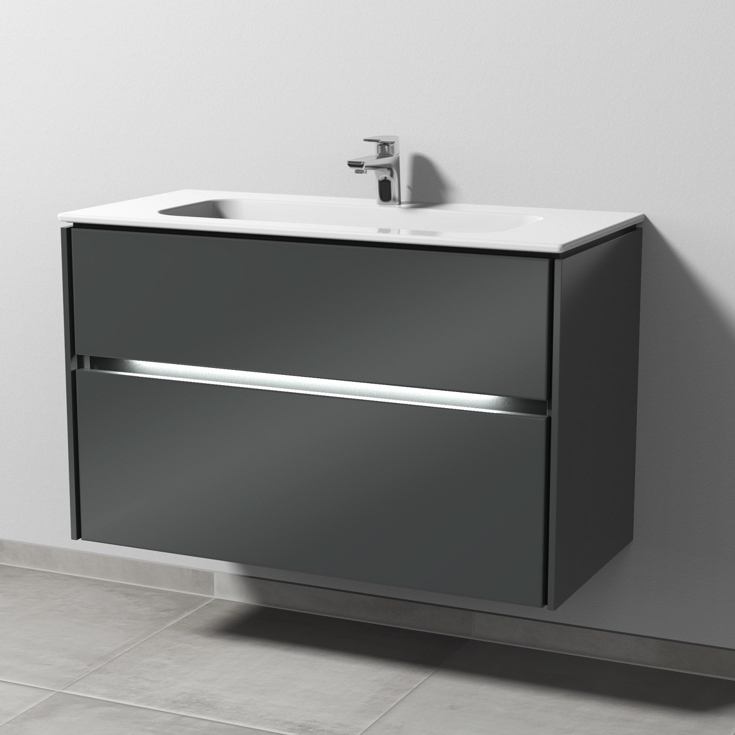 Sanipa Twiga Keramikwaschtisch Design 100 cm mit Unterschrank, 2 Auszügr, inkl. LED-Beleuchtung