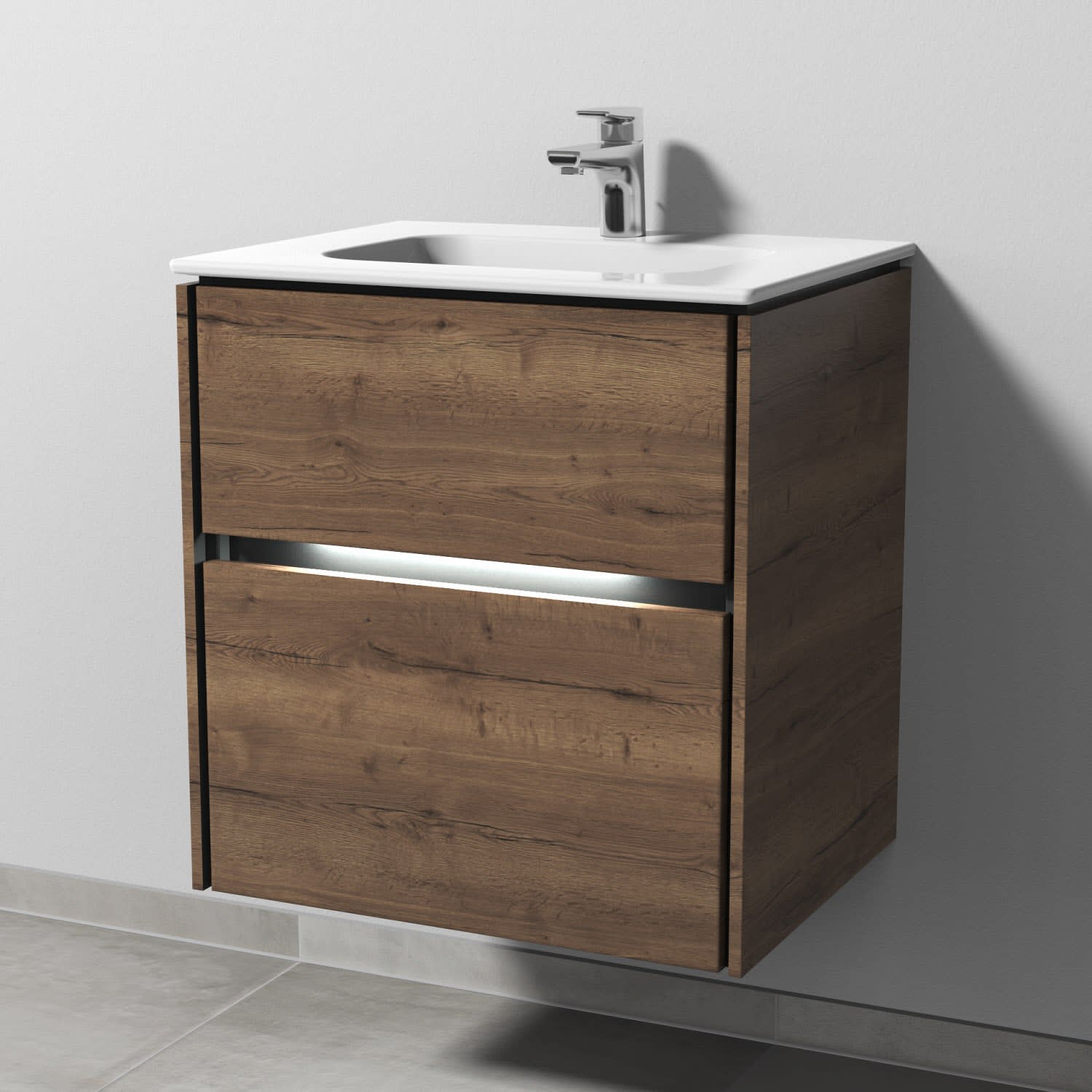 Sanipa Twiga Keramikwaschtisch Design 60 cm mit Unterschrank, 2 Auszüge, inkl. LED-Beleuchtung
