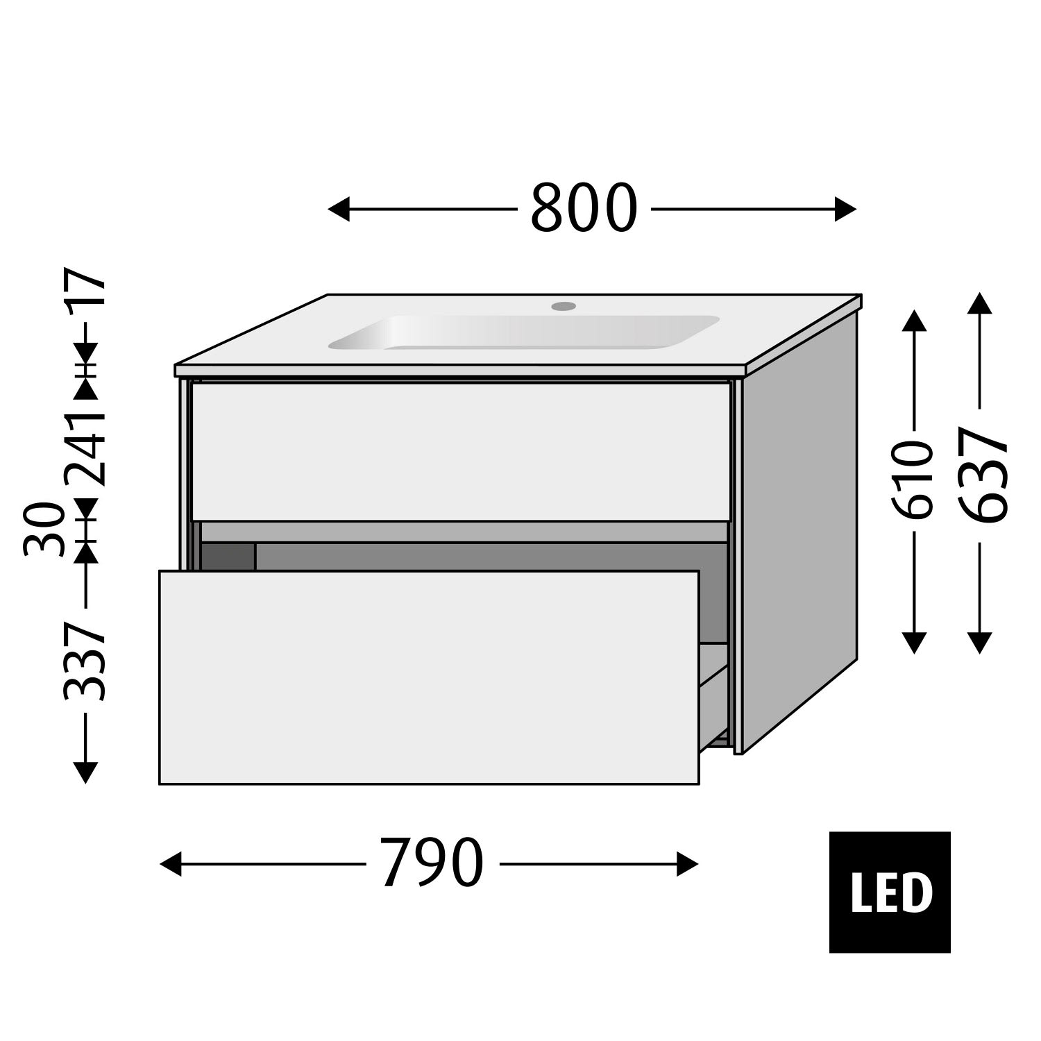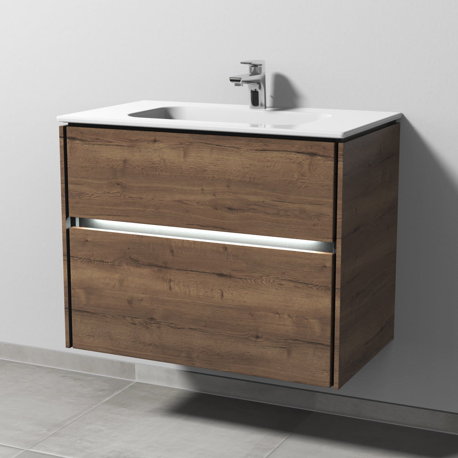 Sanipa Twiga Keramikwaschtisch Design 80 cm mit Unterschrank, 2 Auszüge, inkl. LED-Beleuchtung