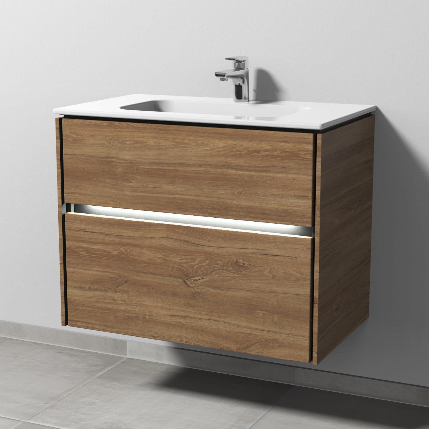 Sanipa Twiga Keramikwaschtisch Design 80 cm mit Unterschrank, 2 Auszüge, inkl. LED-Beleuchtung