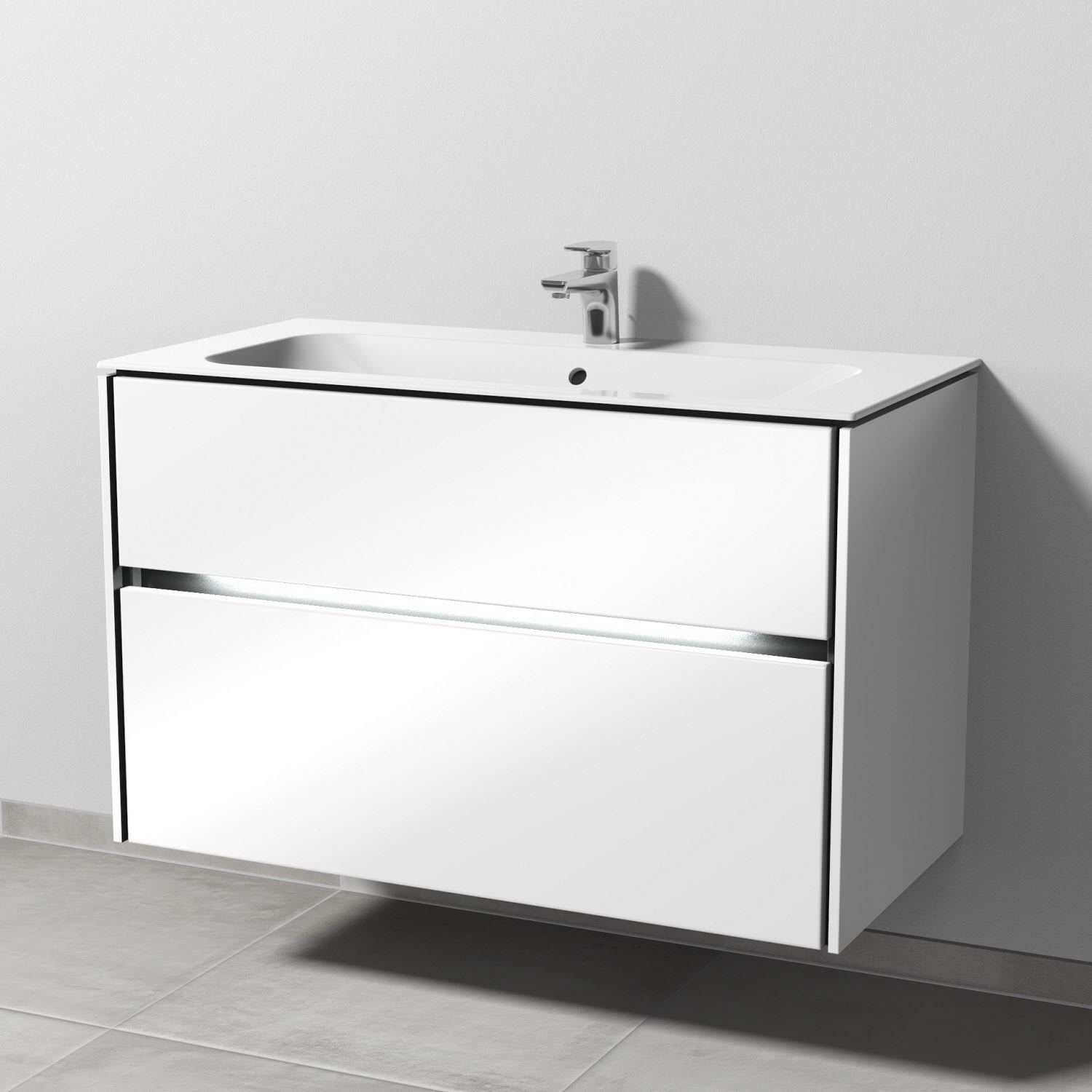Sanipa Twiga Keramikwaschtisch Finion 100 cm mit Unterschrank, 2 Auszüge, inkl. LED-Beleuchtung