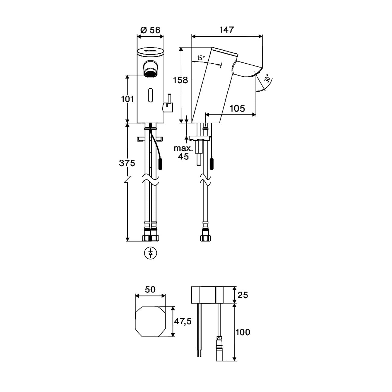 - berührungslose, sensorgesteuerte Armatur mit innovativer ToF-Technologie