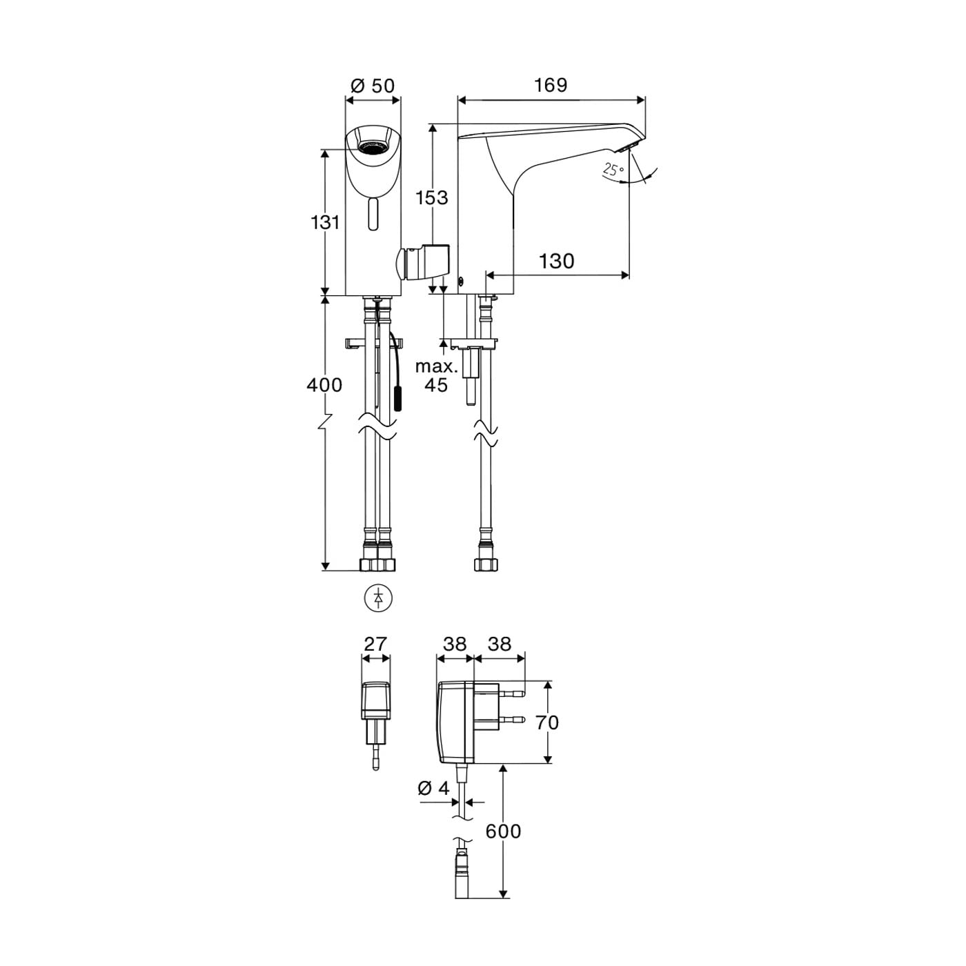 Schell XERIS E² Elektronische Waschtisch-Thermostatarmatur mit Stecker-Netzteil, Hochdruck-Mischwasser, M
