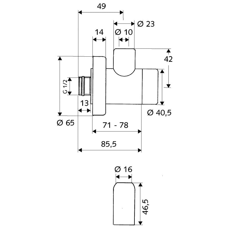 Anschluss 1/2", Abgang 3/8" x Ø 10 mm