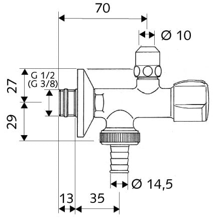 - Eckventil mit integriertem Geräteventil zum Anschluss von Haushaltsgeräten