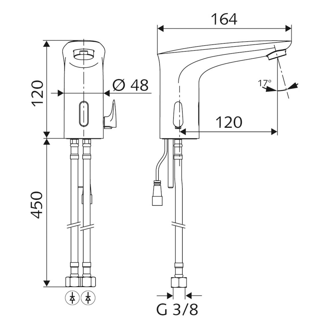 - 2 flexible Anschlussschläuche G 3/8 IG x 45 cm