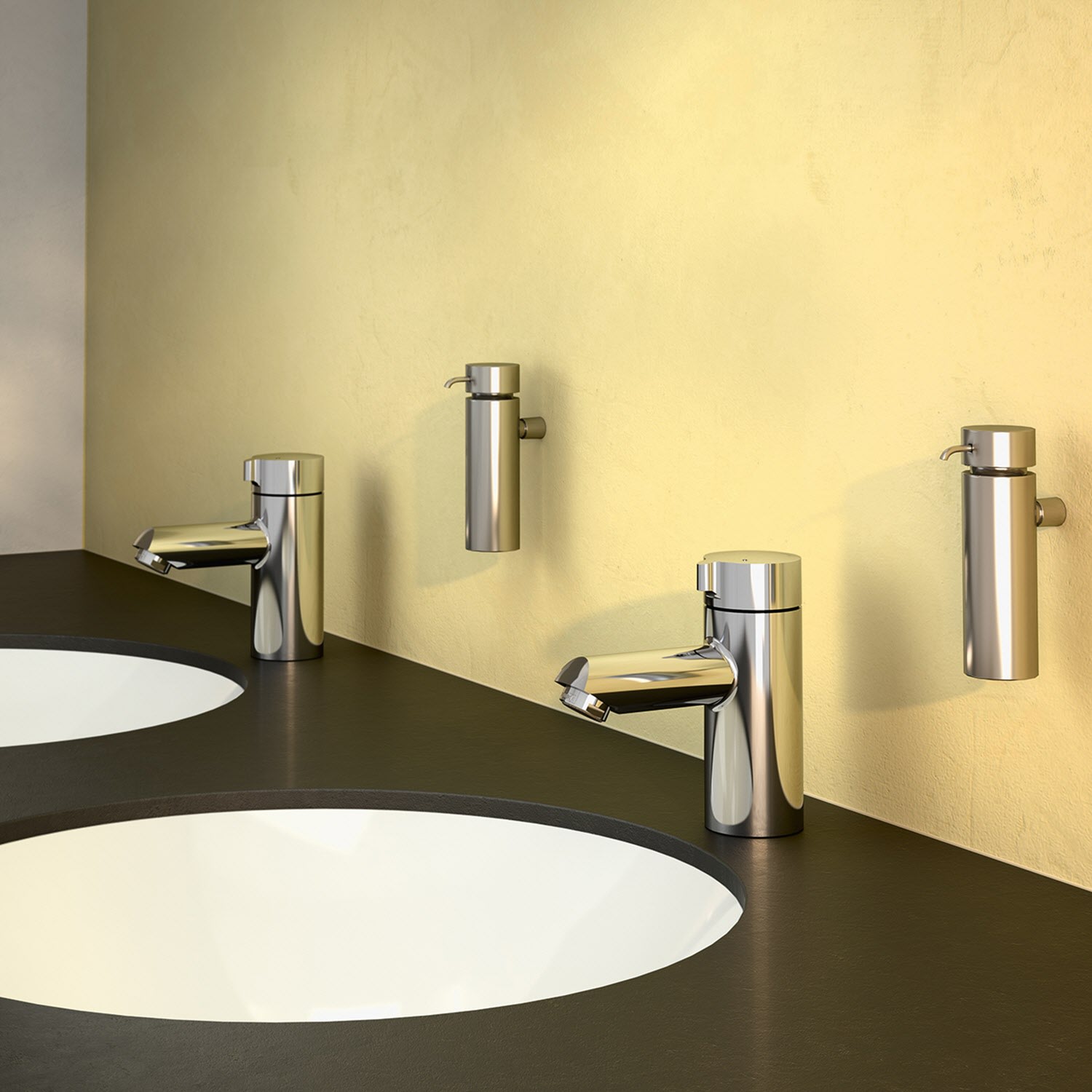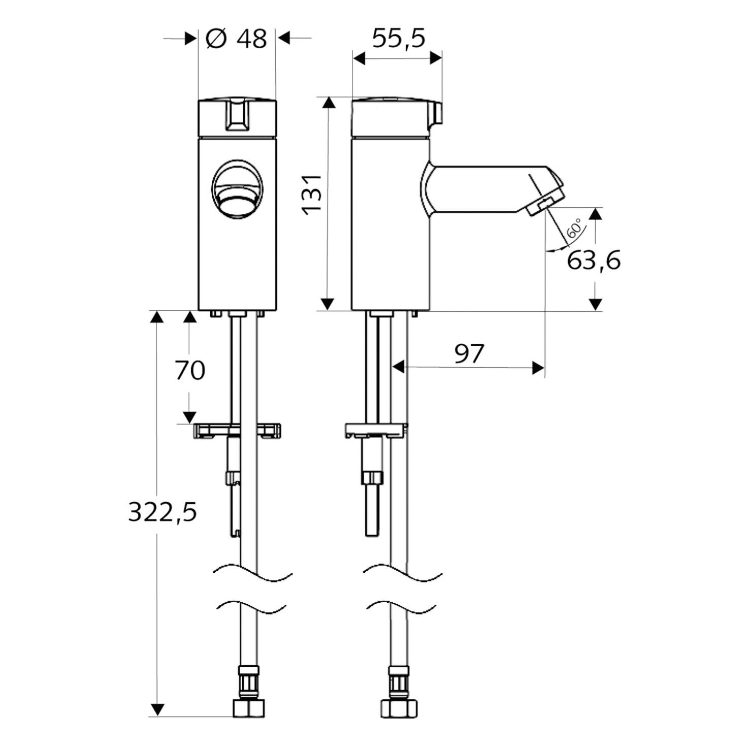 Kompakte Auf/Zu-Armatur für Handwaschbecken.