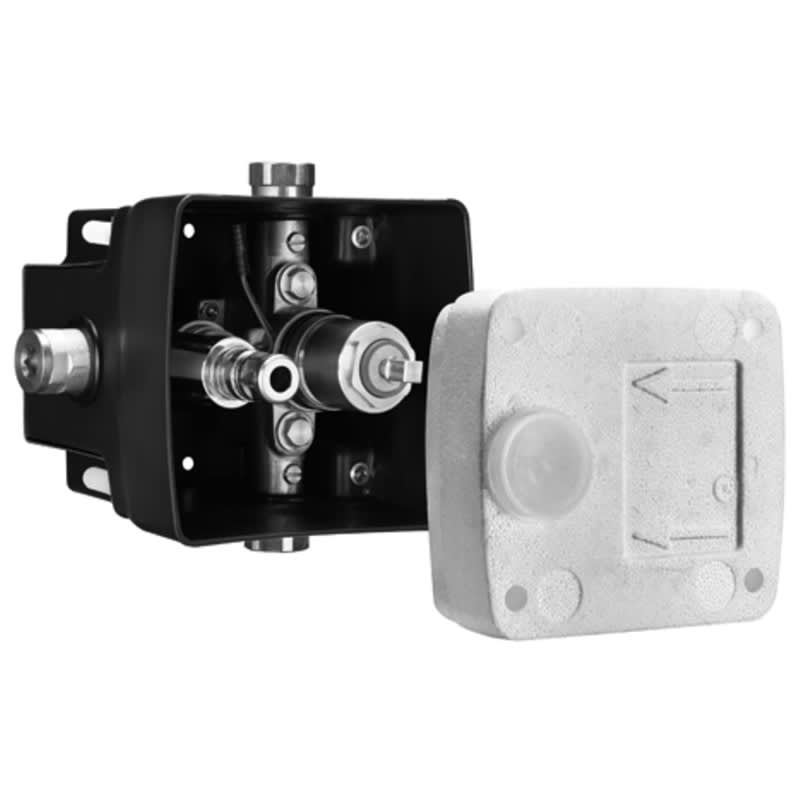 Unterputz-Armatur zur Kombination mit Wandauslauf-Fertigbausets, Armatur vormontiert in Kunststoff-Unterputzbox mit abgedichteten Gehäusedurchführungen.
