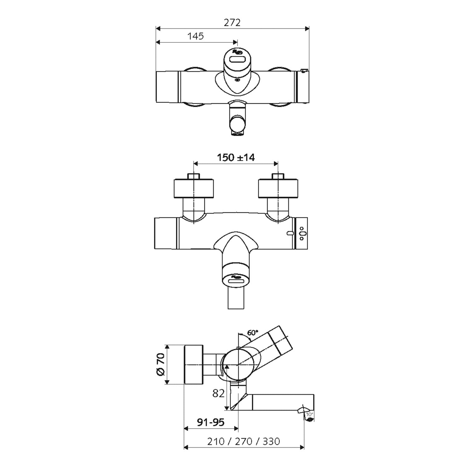 - Ausladung bis Mitte Strahlregler: 27 cm