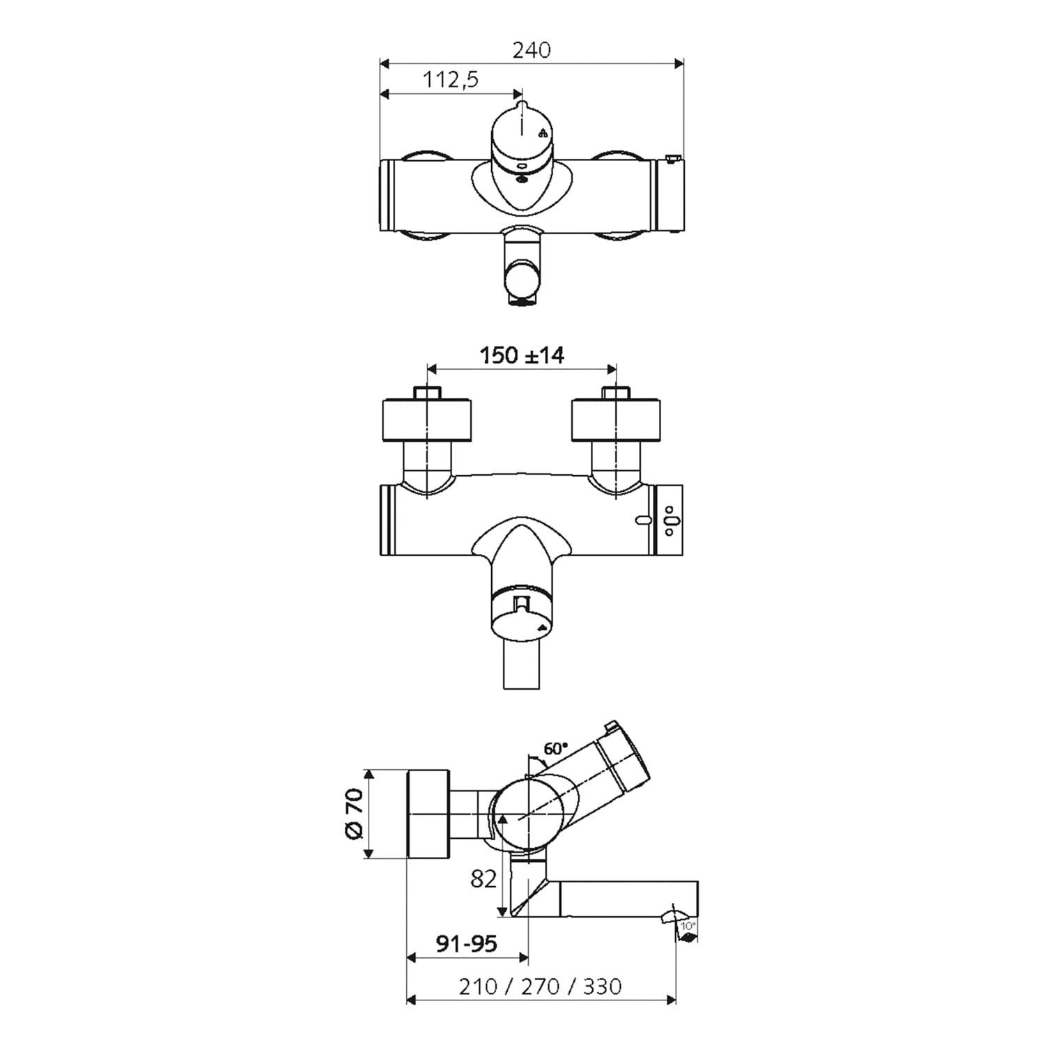 manuelle Auf/Zu-Betätigung, Mischwasser, Thermostat