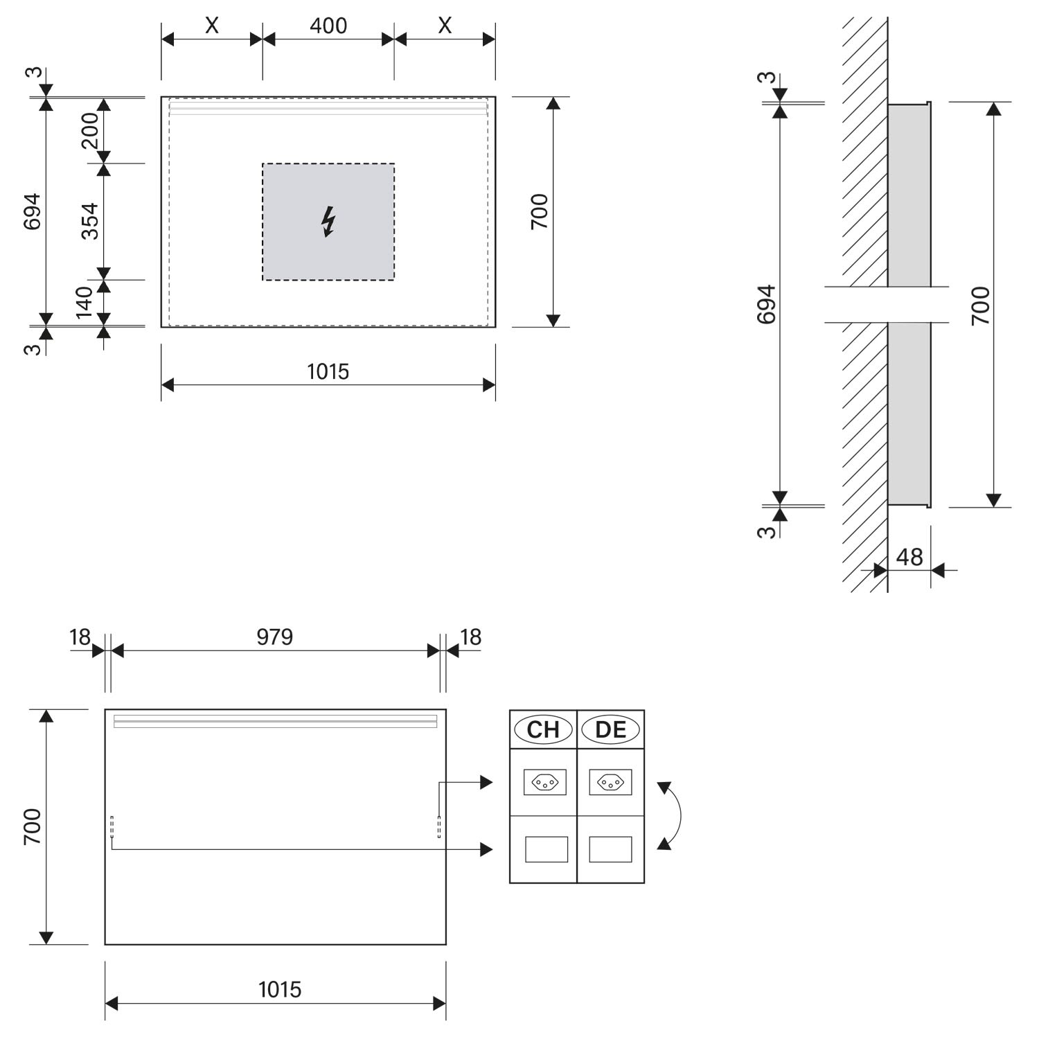 Schneider ARANGA LED Lichtspiegel ARA/SP 100/LED/SD 101,5 x 70 cm LED 3000 K mit Steckdose