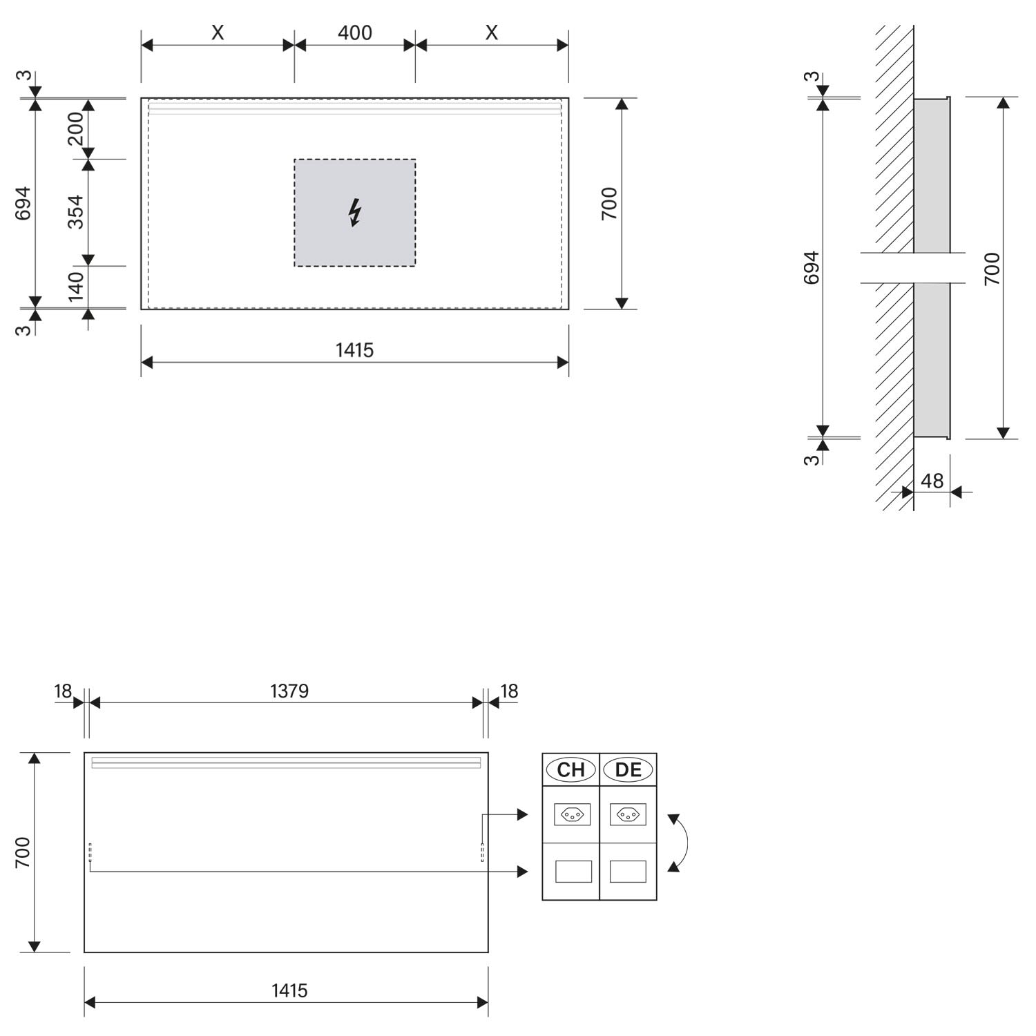 - mit Steckdose (Euro Flachstecker), je nach Montage, links oder rechts seitlich