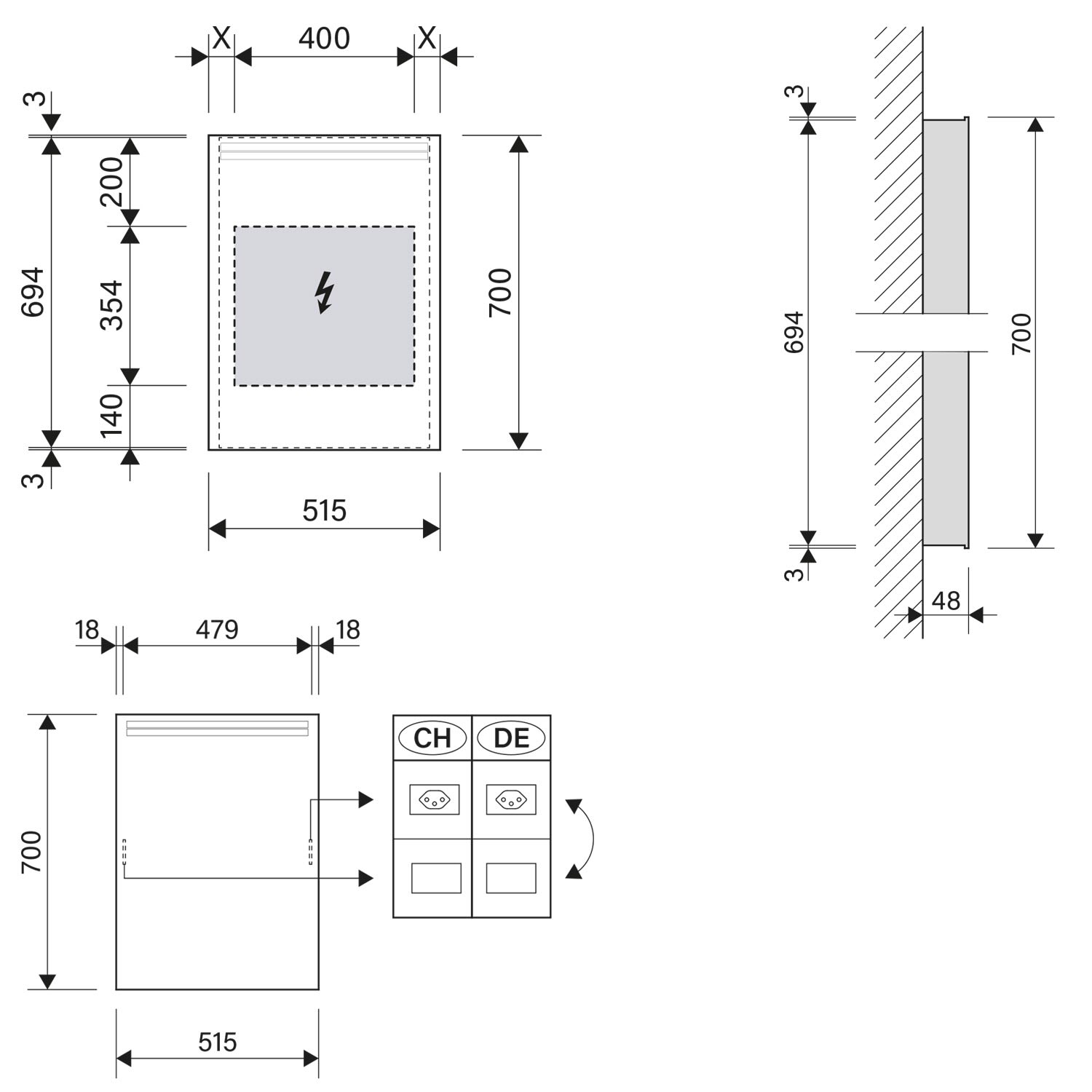 Die Spiegelheizung ist nur über einen externen Schalter, z. B. zusammen mit der Stromversorgung der Leuchte, schaltbar. Die Kippschalter am Lichtspiegel bedienen nur die Beleuchtung.