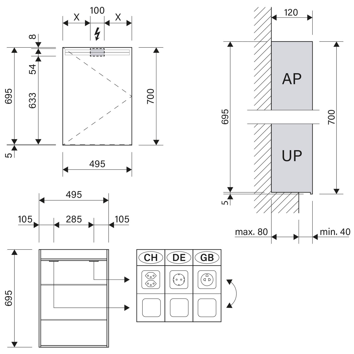 - Aufputz- oder Unterputz-Montage, maximale Einbautiefe 8 cm