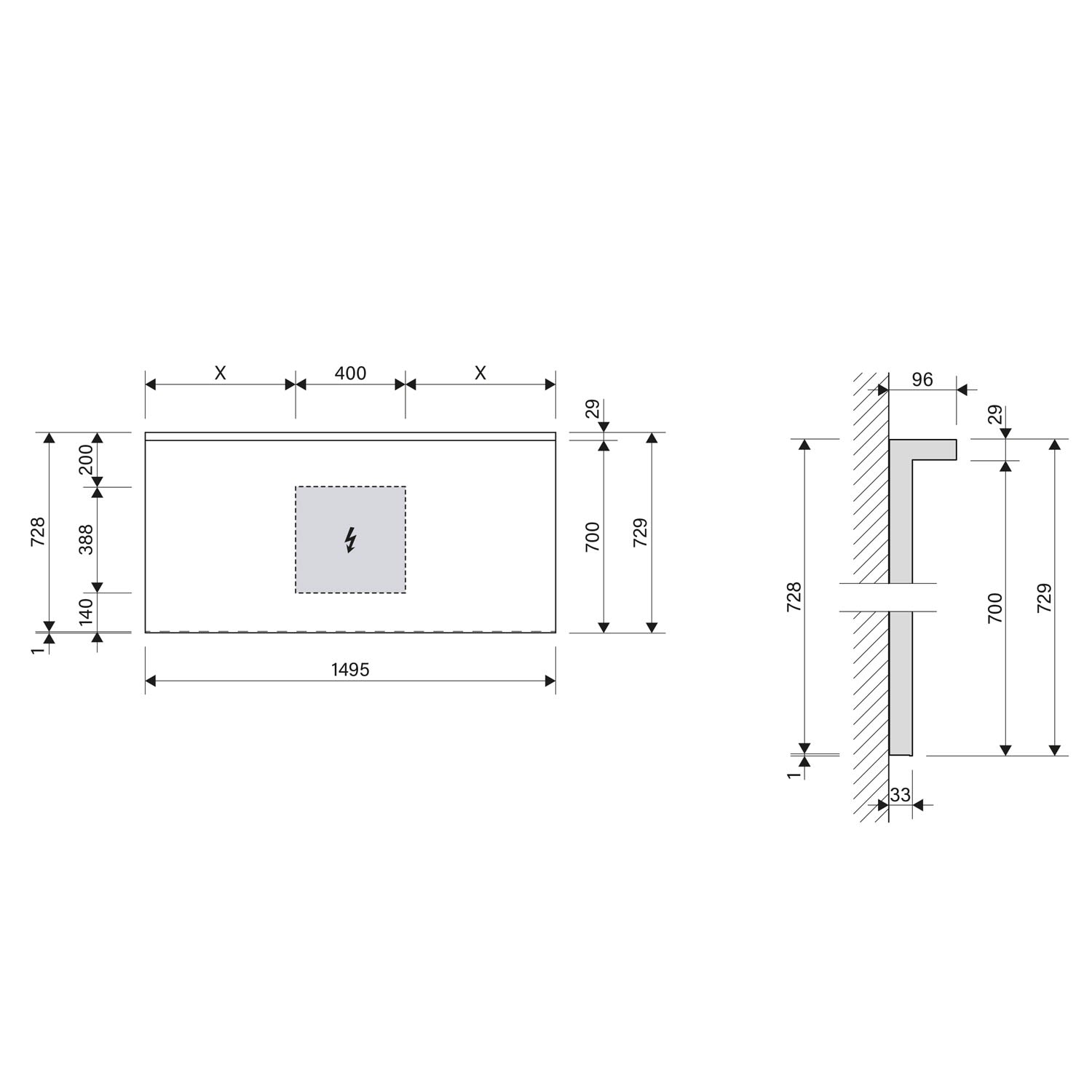 - oben/unten einzeln schaltbar