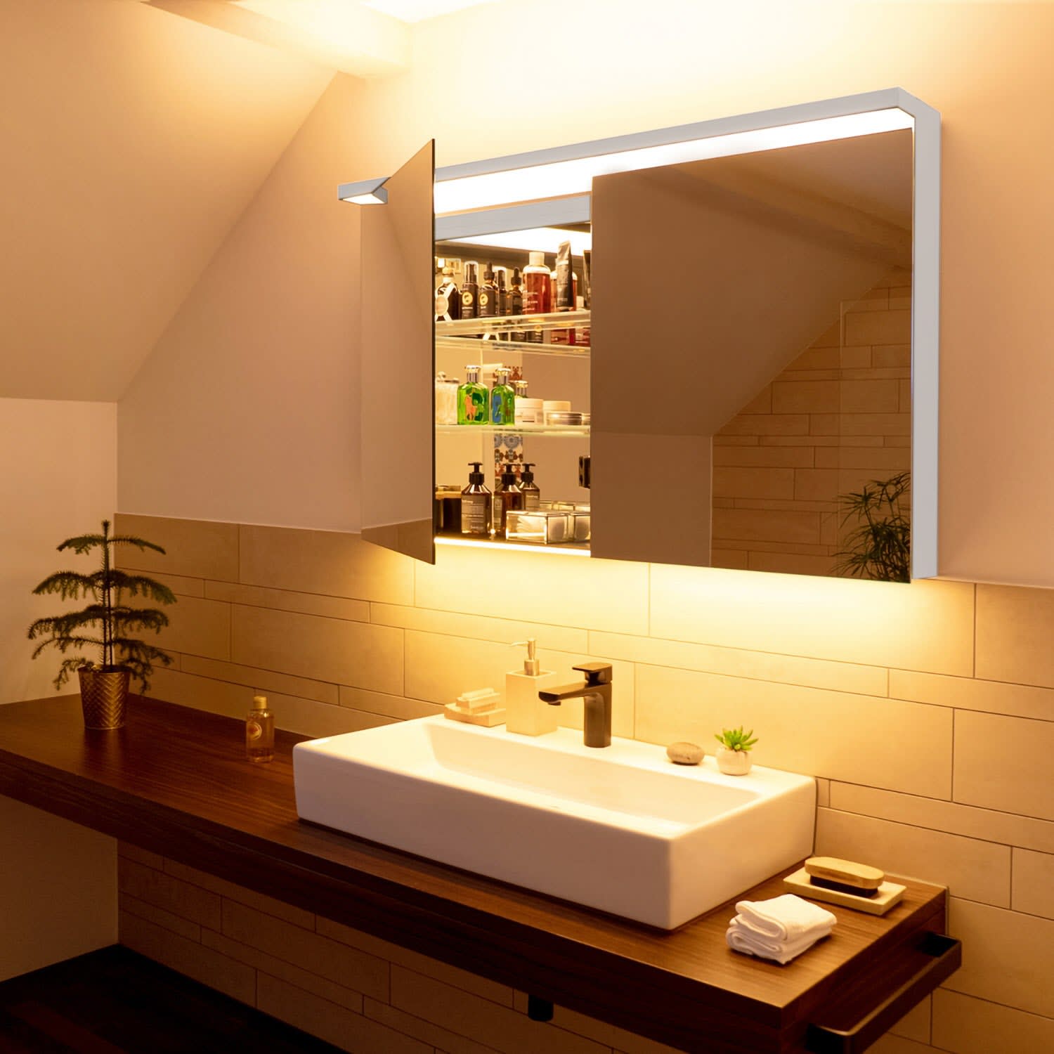 Immer das richtige Licht, morgens, abends, nachts. Sich beleben, sich entspannen. Die Spiegelschränke und Lichtspiegel von Schneider machen Ihr Bad zum Wohlfühlort. Wie die spektakulären und faszinierenden Klippen der Amalfiküste. Mit BORDO erleben Sie den perfekten Lichtbogen als dramatisches und einzigartiges Design. Für klare Linien und elegante Formen.