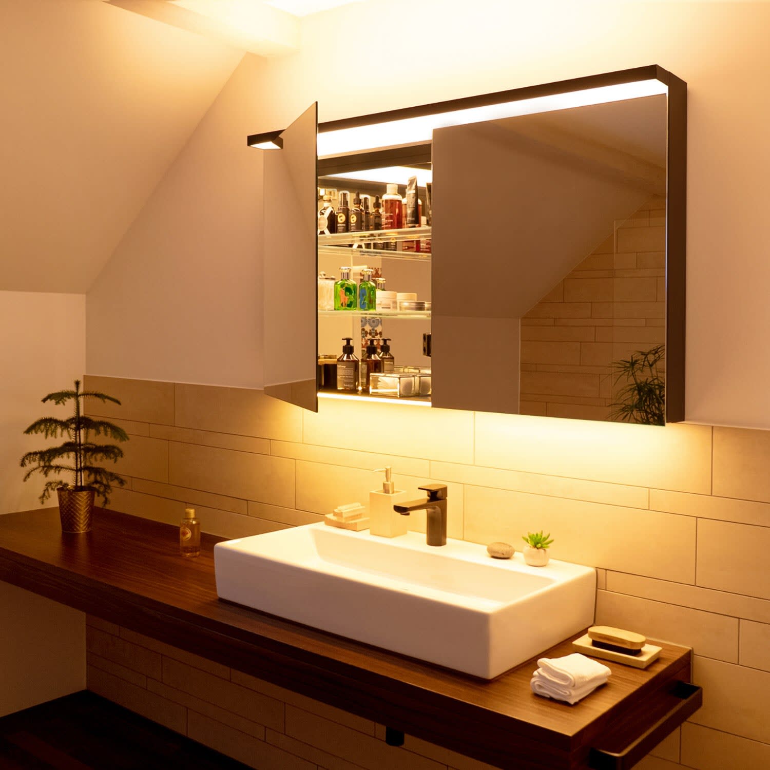 Immer das richtige Licht, morgens, abends, nachts. Sich beleben, sich entspannen. Die Spiegelschränke und Lichtspiegel von Schneider machen Ihr Bad zum Wohlfühlort. Wie die spektakulären und faszinierenden Klippen der Amalfiküste. Mit BORDO erleben Sie den perfekten Lichtbogen als dramatisches und einzigartiges Design. Für klare Linien und elegante Formen.