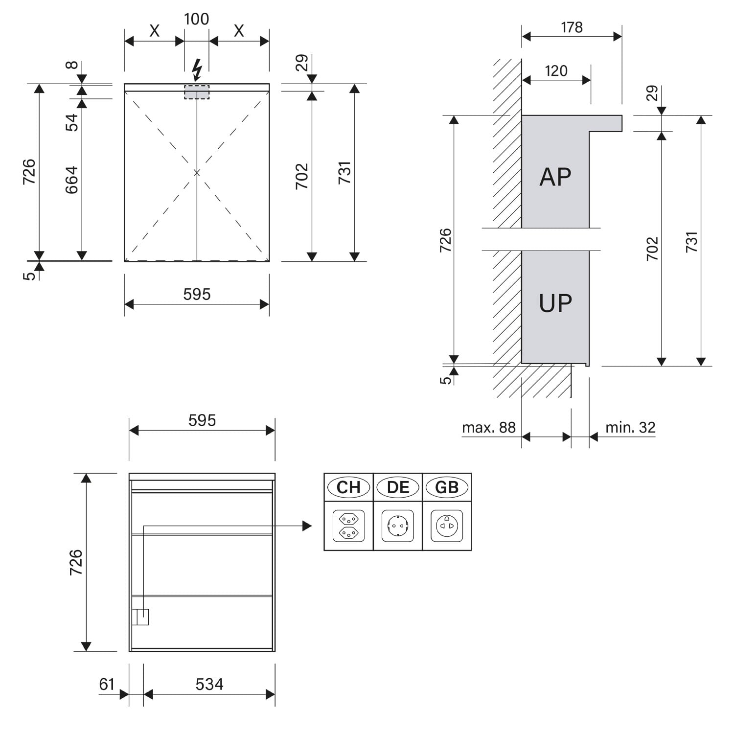 - Aufputz- oder Unterputz-Montage, maximale Einbautiefe 8,8 cm