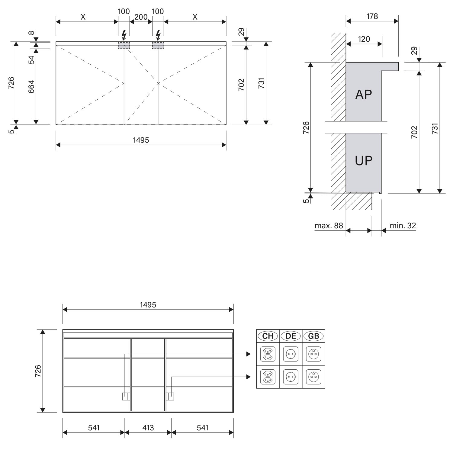 - Aufputz- oder Unterputz-Montage, maximale Einbautiefe 8,8 cm