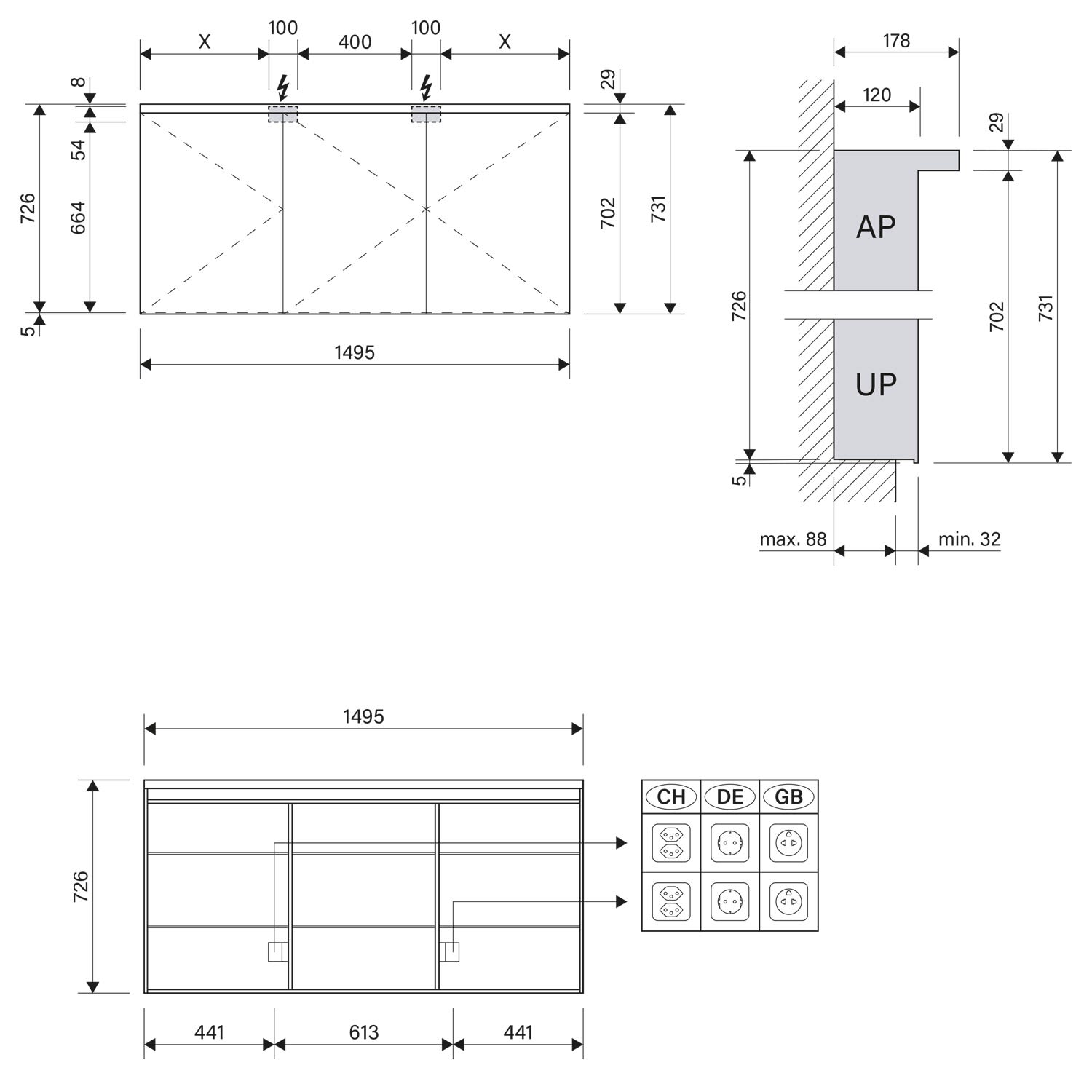 - Aufputz- oder Unterputz-Montage, maximale Einbautiefe 8,8 cm