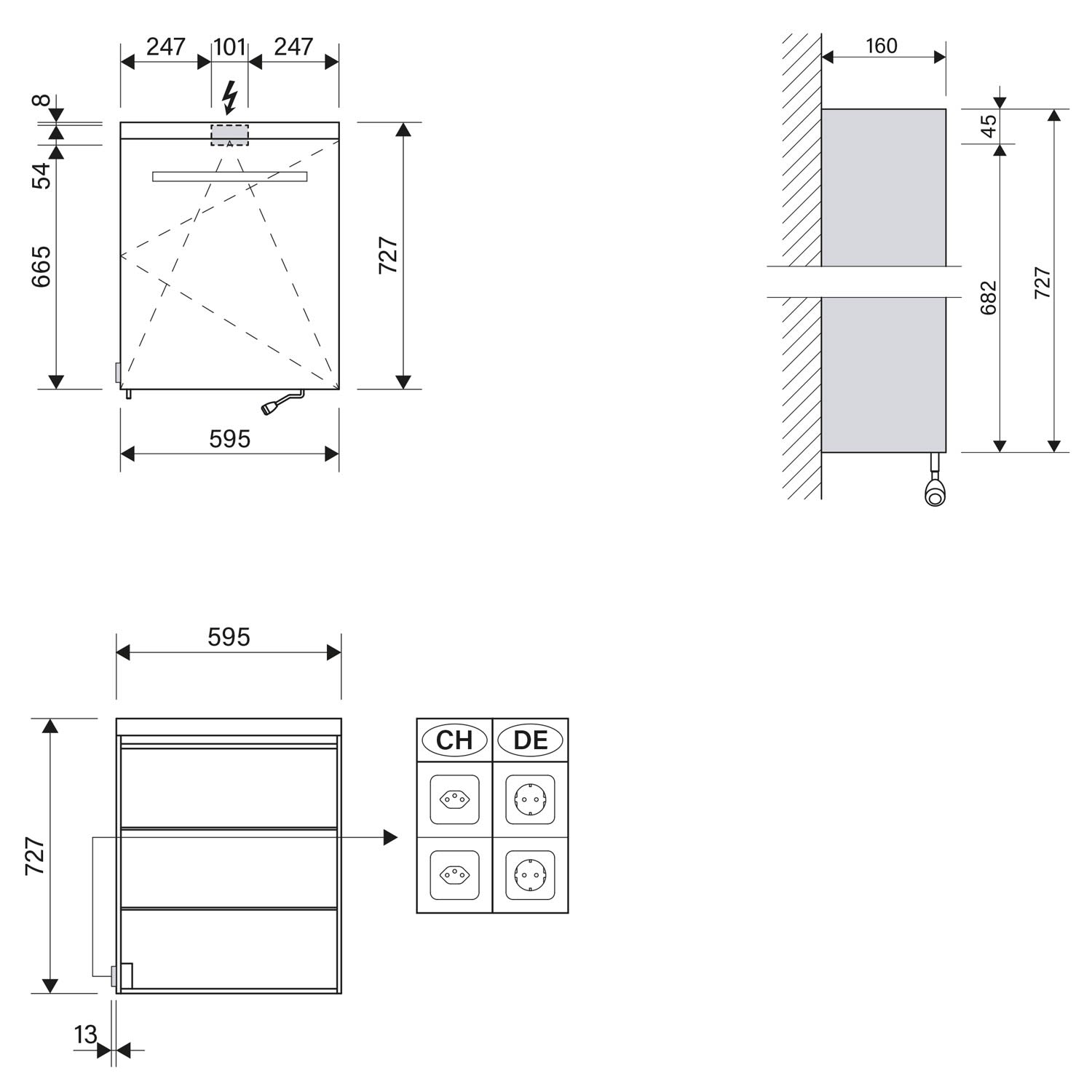 - Steckdose seitlich aussen gegenüber Türanschlag