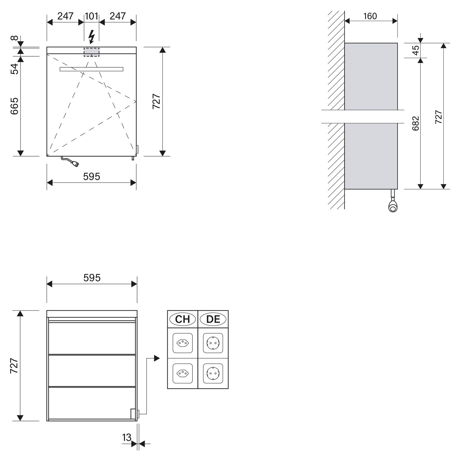 - Steckdose seitlich aussen gegenüber Türanschlag