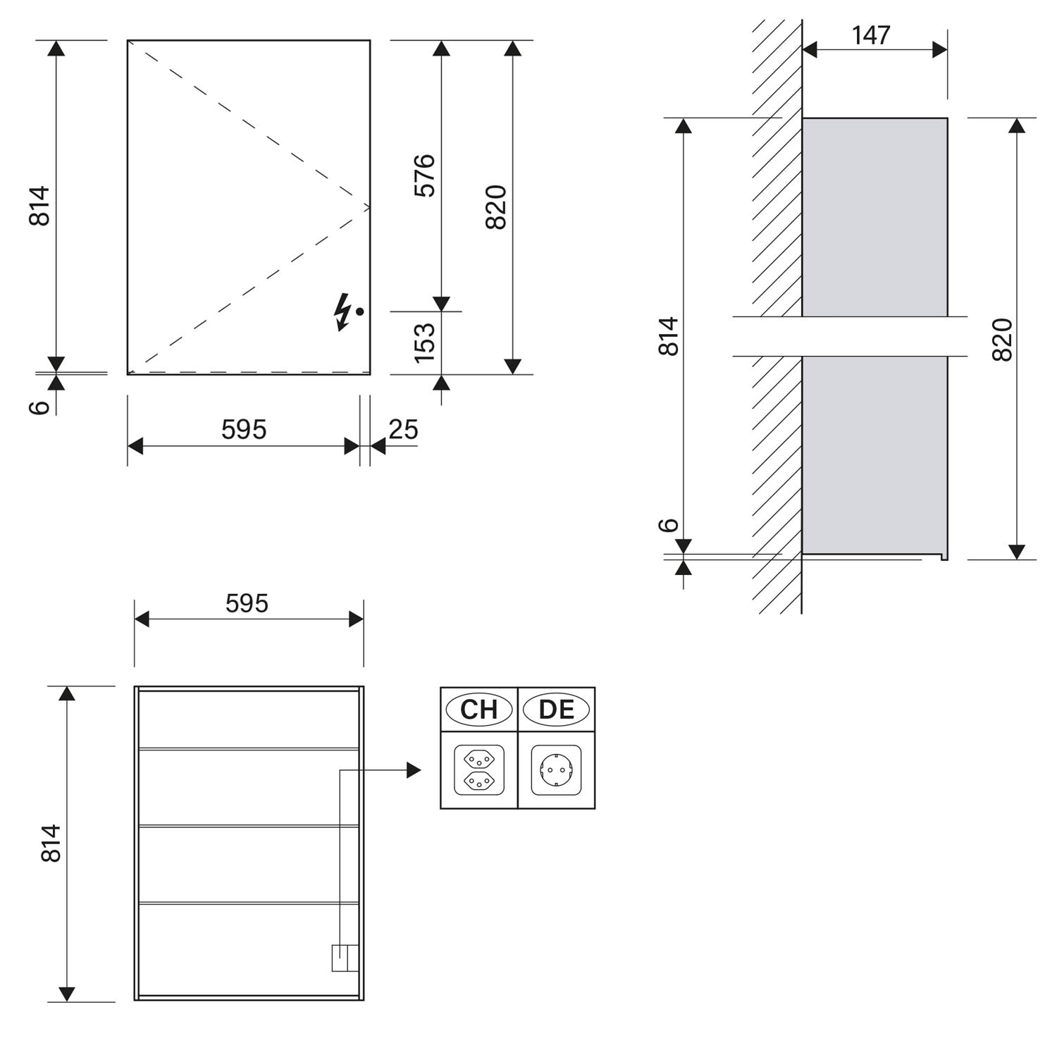 Schneider CARE Spiegelschrank CLC1 60/1/O/L 59,5 x 82 cm, mit Drehtür, DE