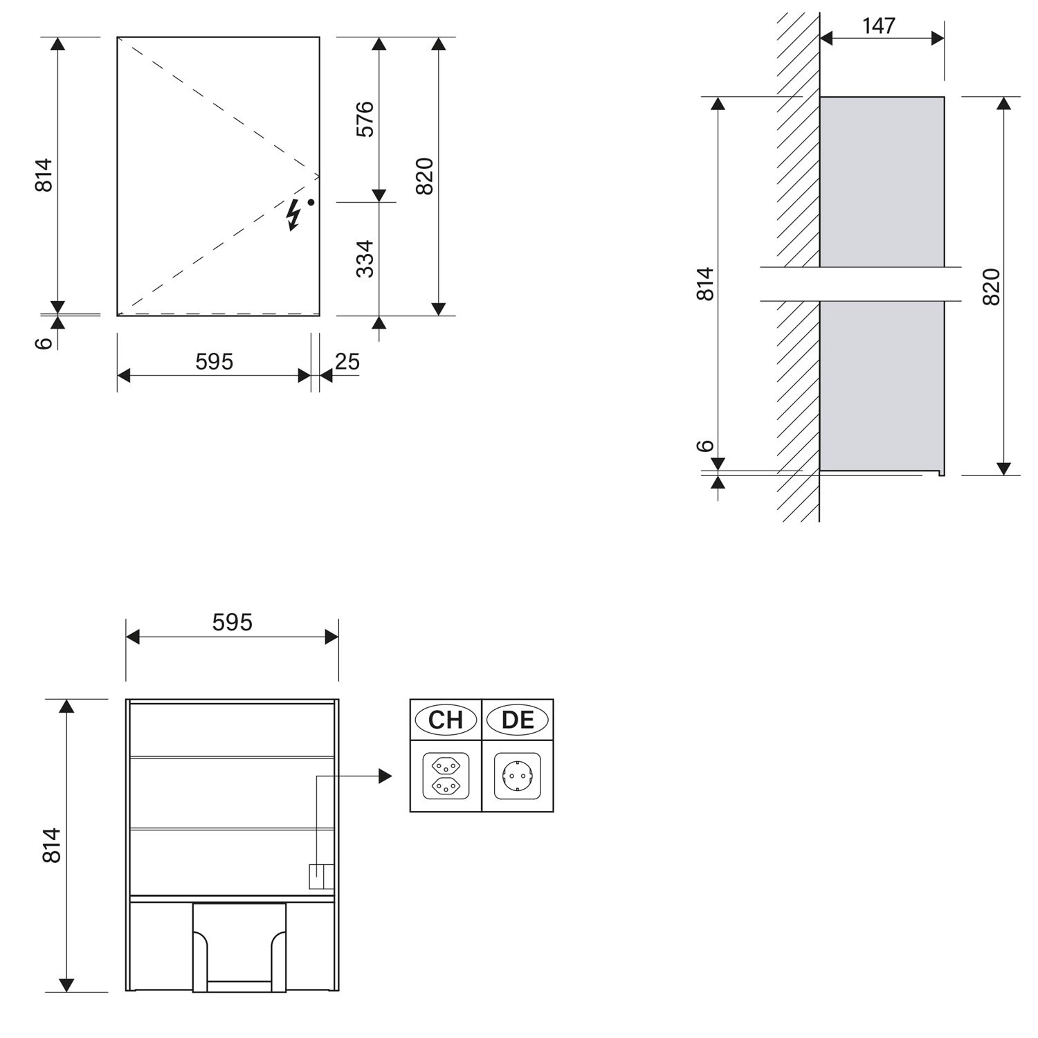 - Steckdose innen oberhalb Spenderfach an Seitenprofil gegenüber Türanschlag