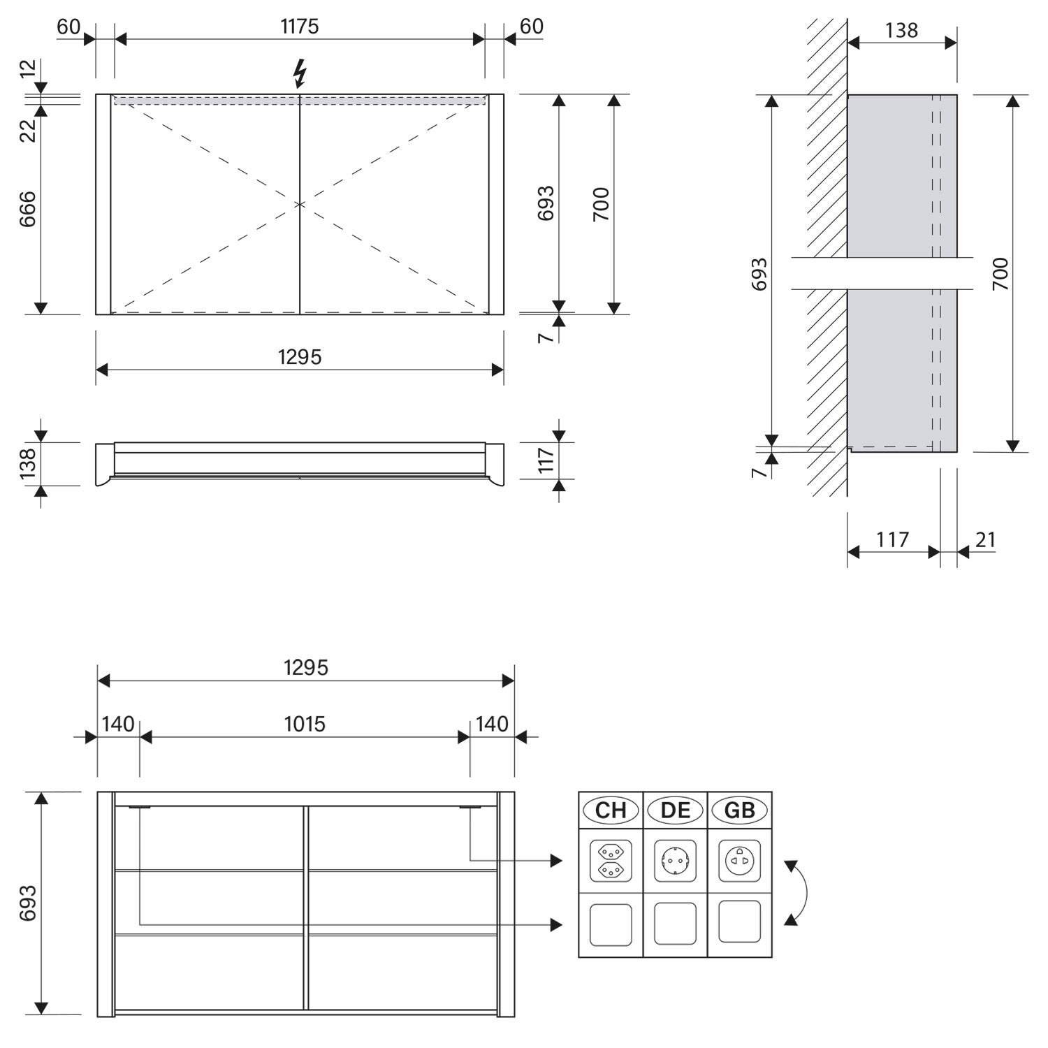 Schneider EASY LED Spiegelschrank ELS1 130/2/LED 129,5 x 70 cm, 3000 K, DE