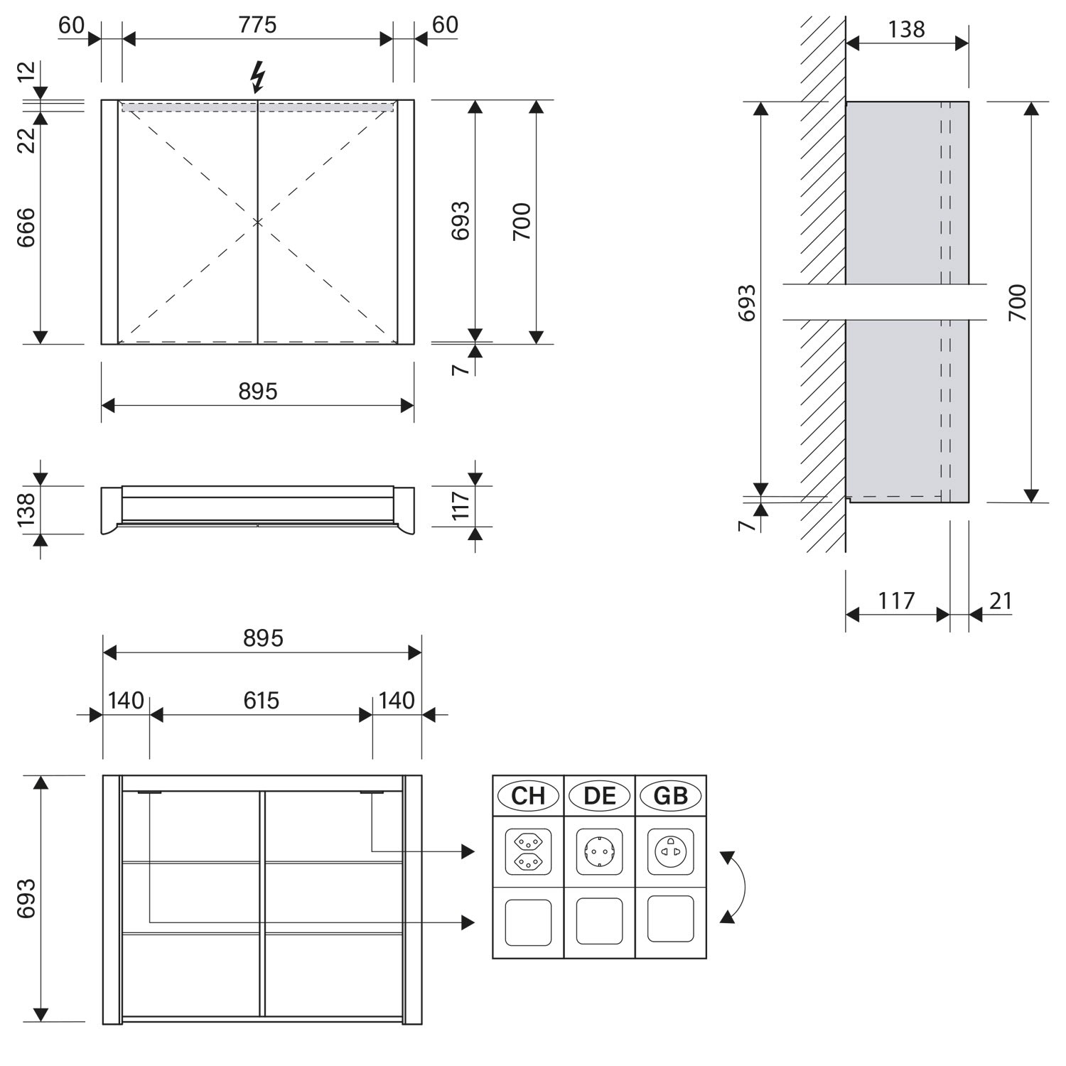 Schneider EASY LED Spiegelschrank ELS1 90/2/LED 89,5 x 70 cm, 3000 K, DE