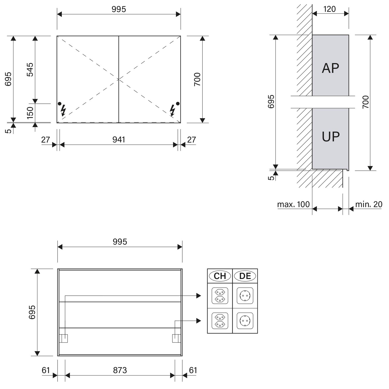 - Aufputz- oder Unterputz-Montage, maximale Einbautiefe 10 cm