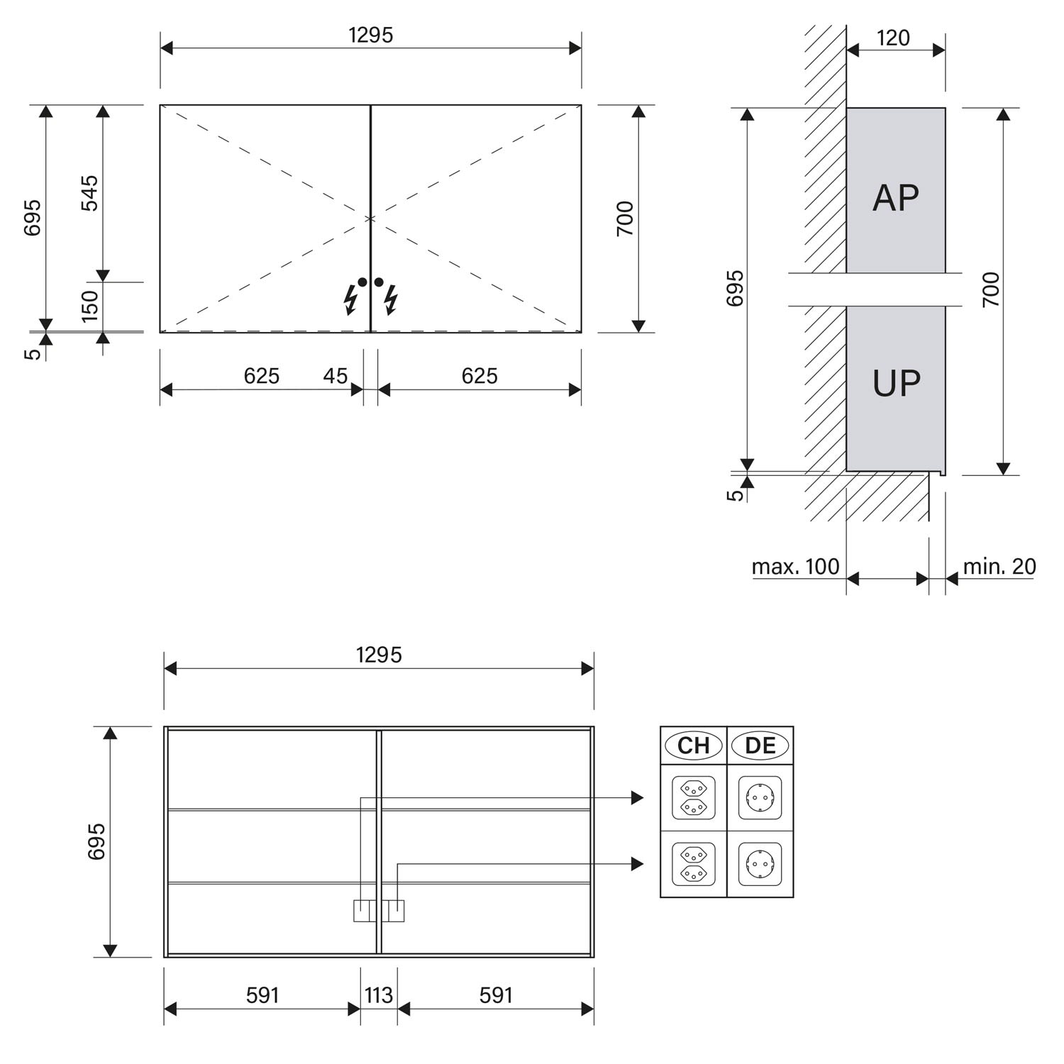 - Aufputz- oder Unterputz-Montage, maximale Einbautiefe 10 cm