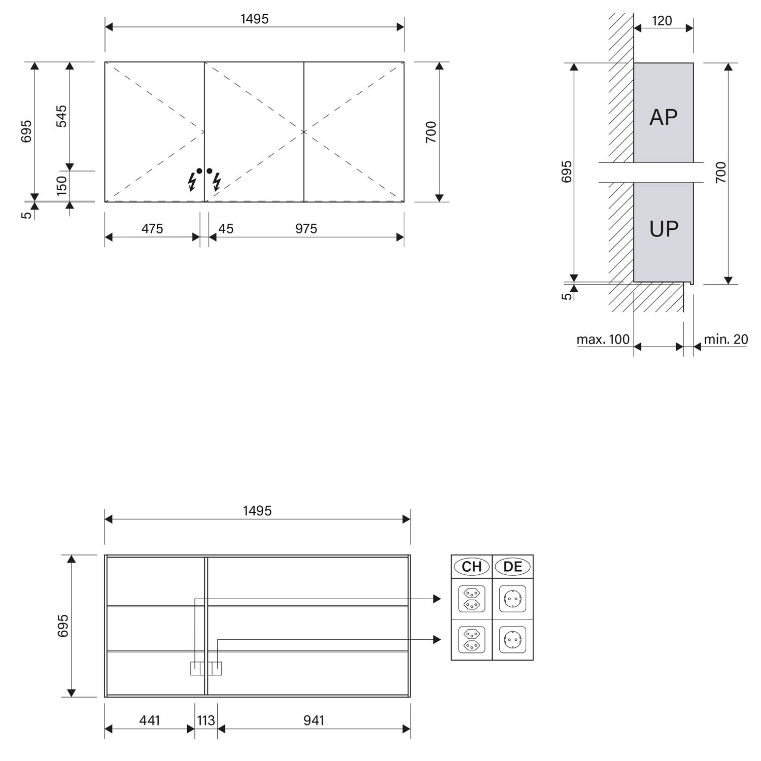 - Aufputz- oder Unterputz-Montage, maximale Einbautiefe 10 cm