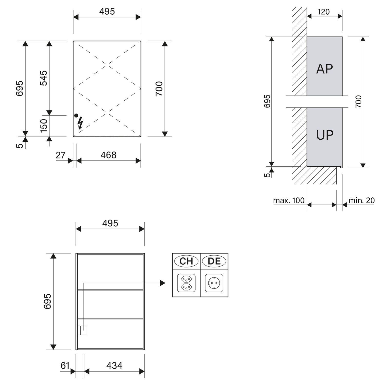 Schneider EASY Spiegelschrank ELC1 50/1/0/SD/L 49,5 x 70 cm, 1 Steckdose links, DE