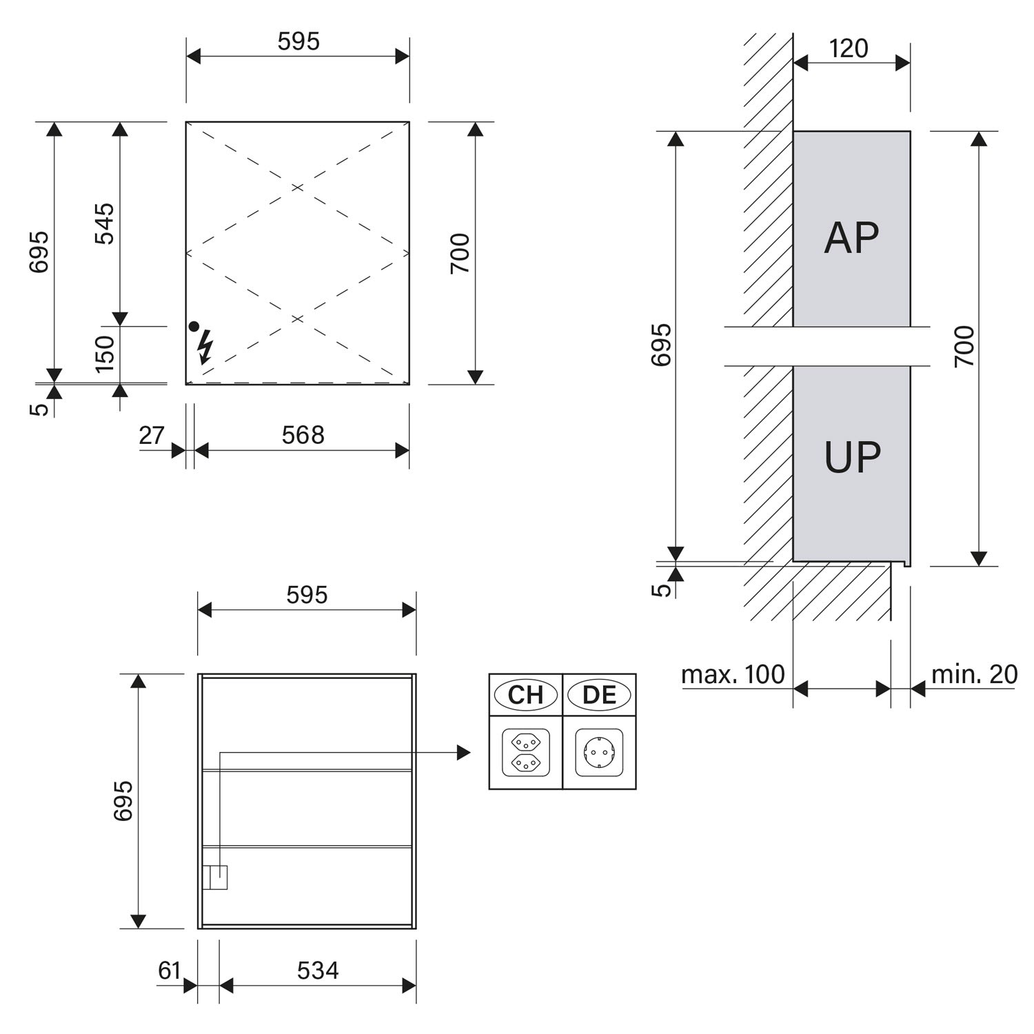 - Aufputz- oder Unterputz-Montage, maximale Einbautiefe 10 cm